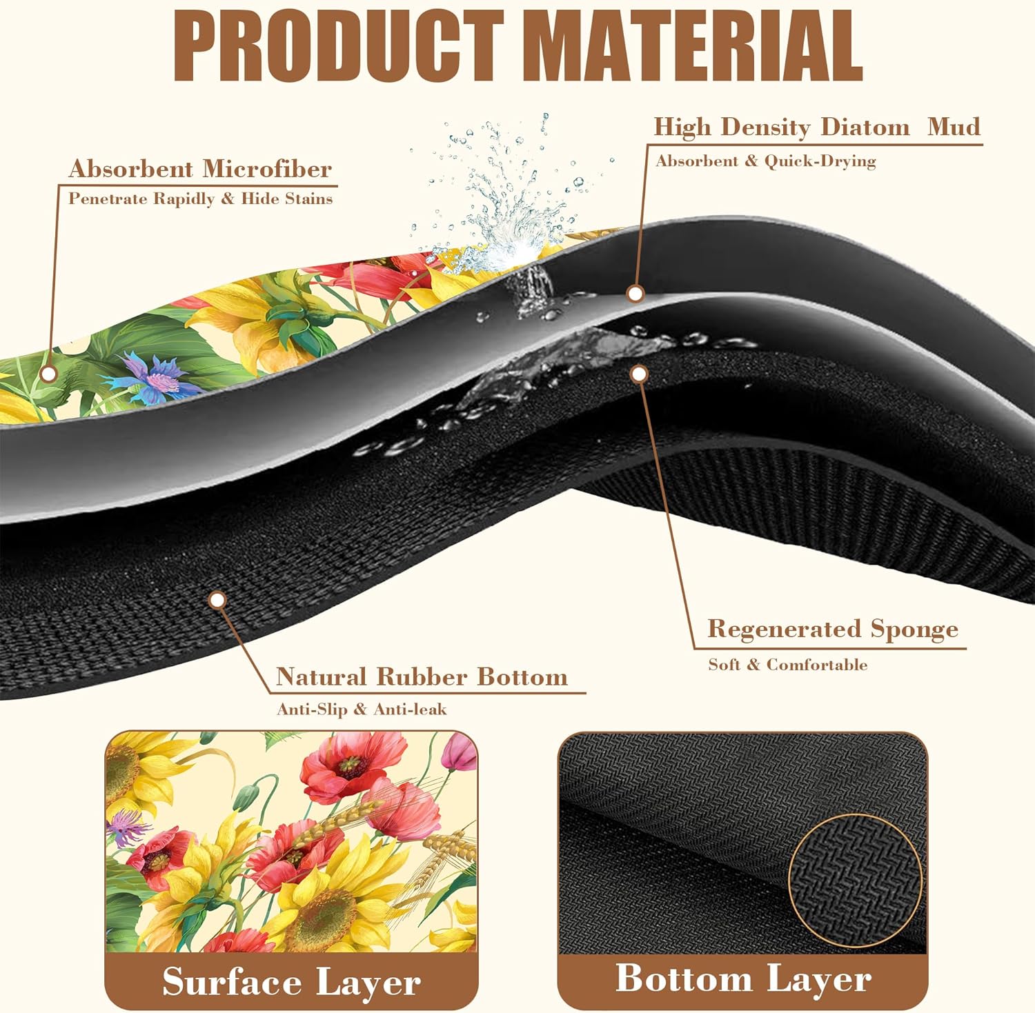 Yellow Sunflower Cornflower Coffee Mat Absorbent Dish Drying Mat for Kitchen Counter Hide Stain Rubber Backed Coffee Bar Accessories Fit Under Espresso Machine 15.7 x 23.6 Inch