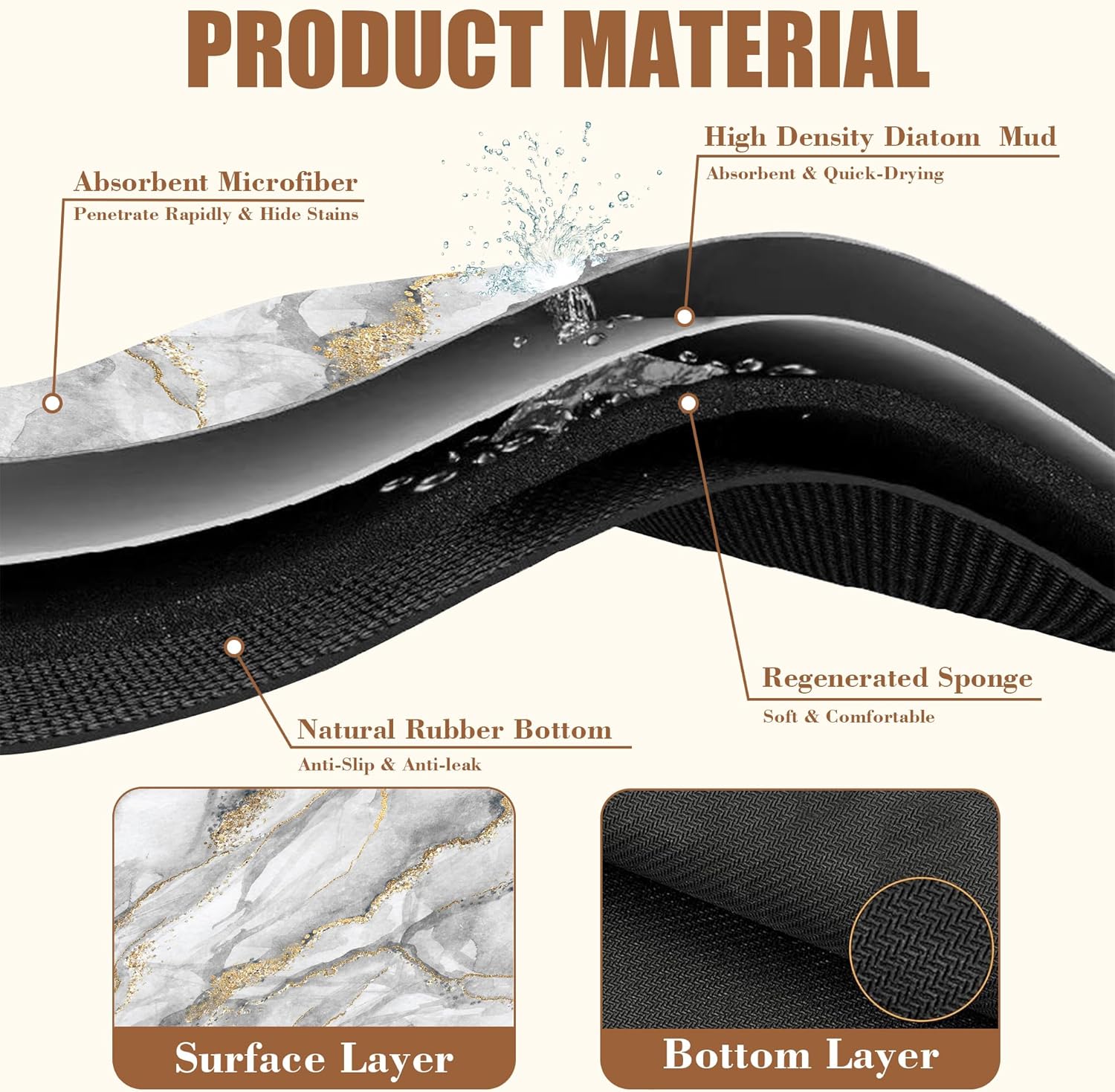 White and Gold Marble Dish Drying Mat for Kitchen Counter Absorbent Hide Stain Coffee Mat Rubber Backed Dish Drainer Rack Pad Espresso Machine Coffee Bar Accessories 15.7 x 23.6 Inch