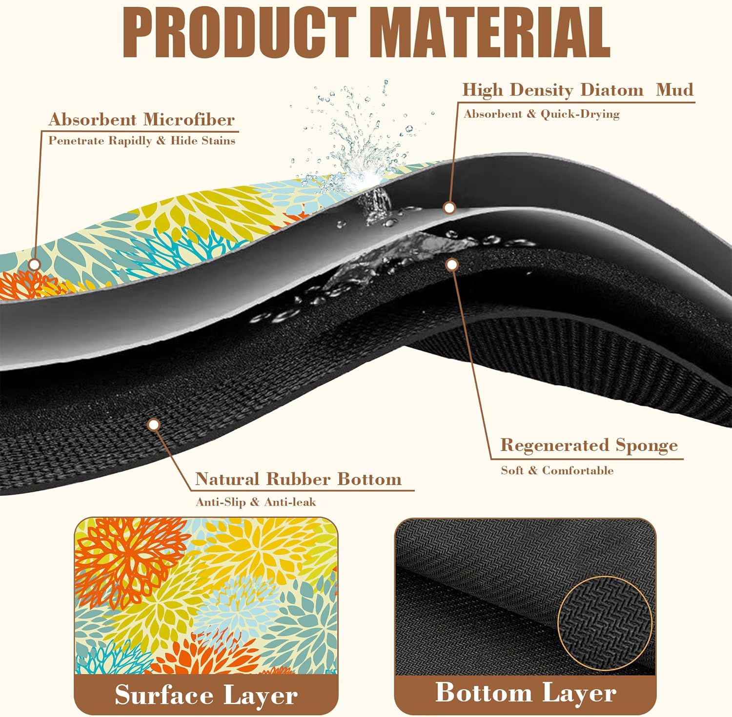 Orange and Blue Chrysanthemum Flower Coffee Mat Absorbent Dish Drying Mat Hide Stain Rubber Backed Coffee Bar Accessories Fit Under Espresso Machine Cafe Table 15.7 x 23.6 Inch