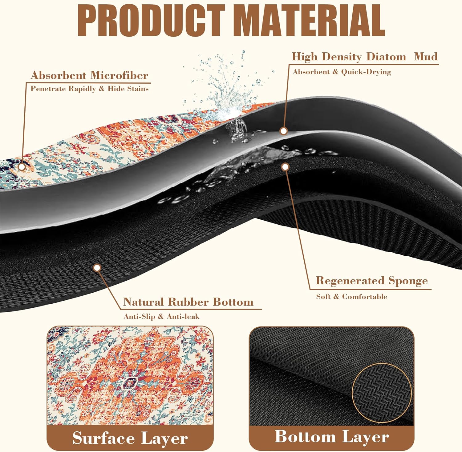 Persian Vintage Boho Carpet Coffee Mat Dish Drying Mat for Kitchen Counter Absorbent Hide Stain Rubber Backed Coffee Bar Accessories Fit Under Espresso Machine Dish Drainer 11.8 x 19.7 Inch