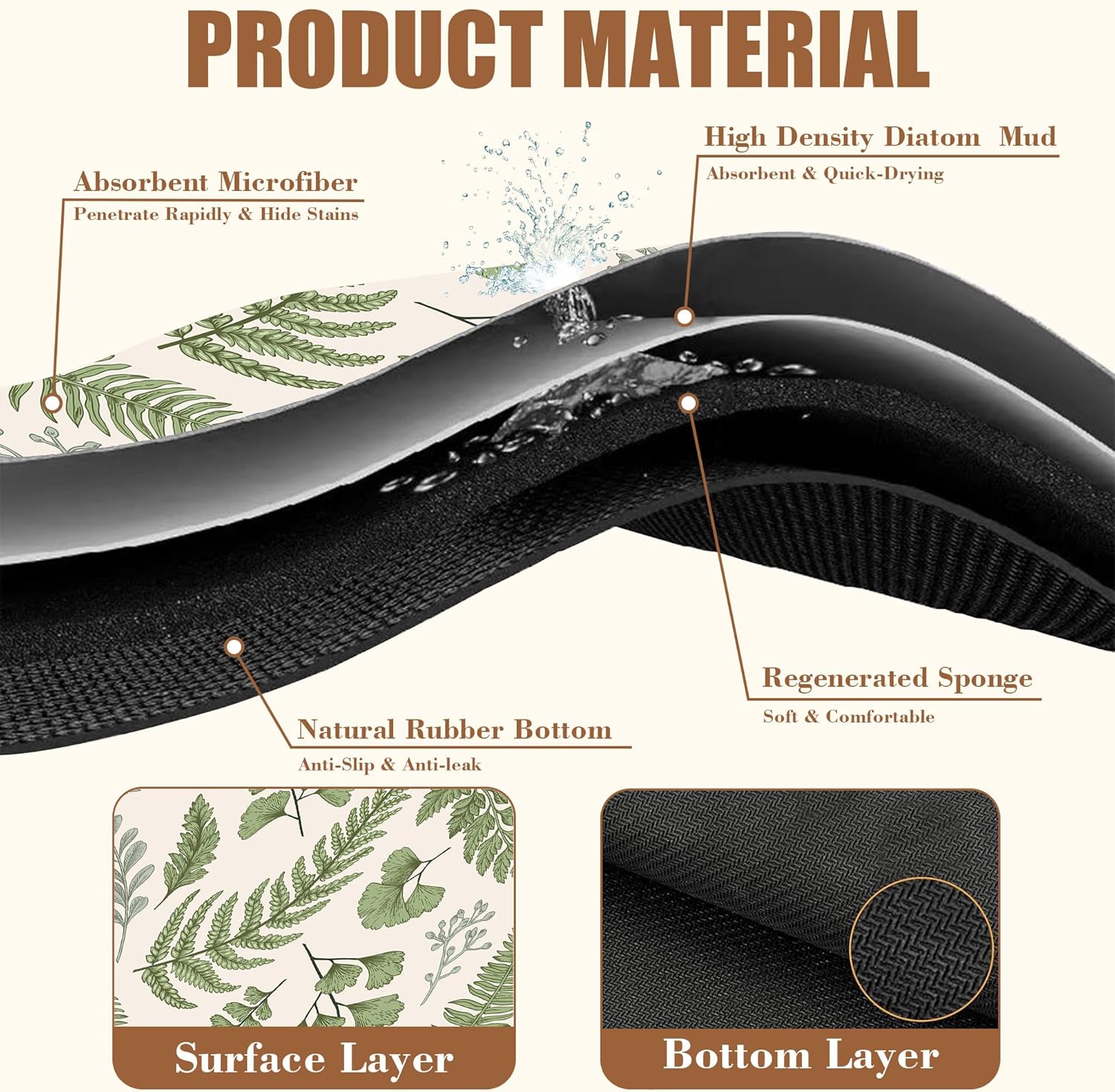 Leaves and Herbs Dish Drying Mat for Kitchen Counter Bar Mat Hide Stain Absorbent Rubber Backed Coffee Maker Espresso Machine Bar Accessories 11.8 x 19.7 Inch