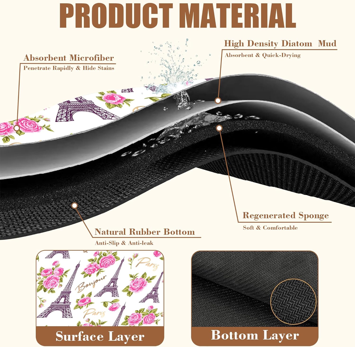 Eiffel Tower with Pink Rose Coffee Mat Absorbent Dish Drying Mat for Kitchen Counter Hide Stain Rubber Backed Coffee Bar Accessories Fit Under Espresso Machine Dish Drainer 15.7 x 23.6 Inch