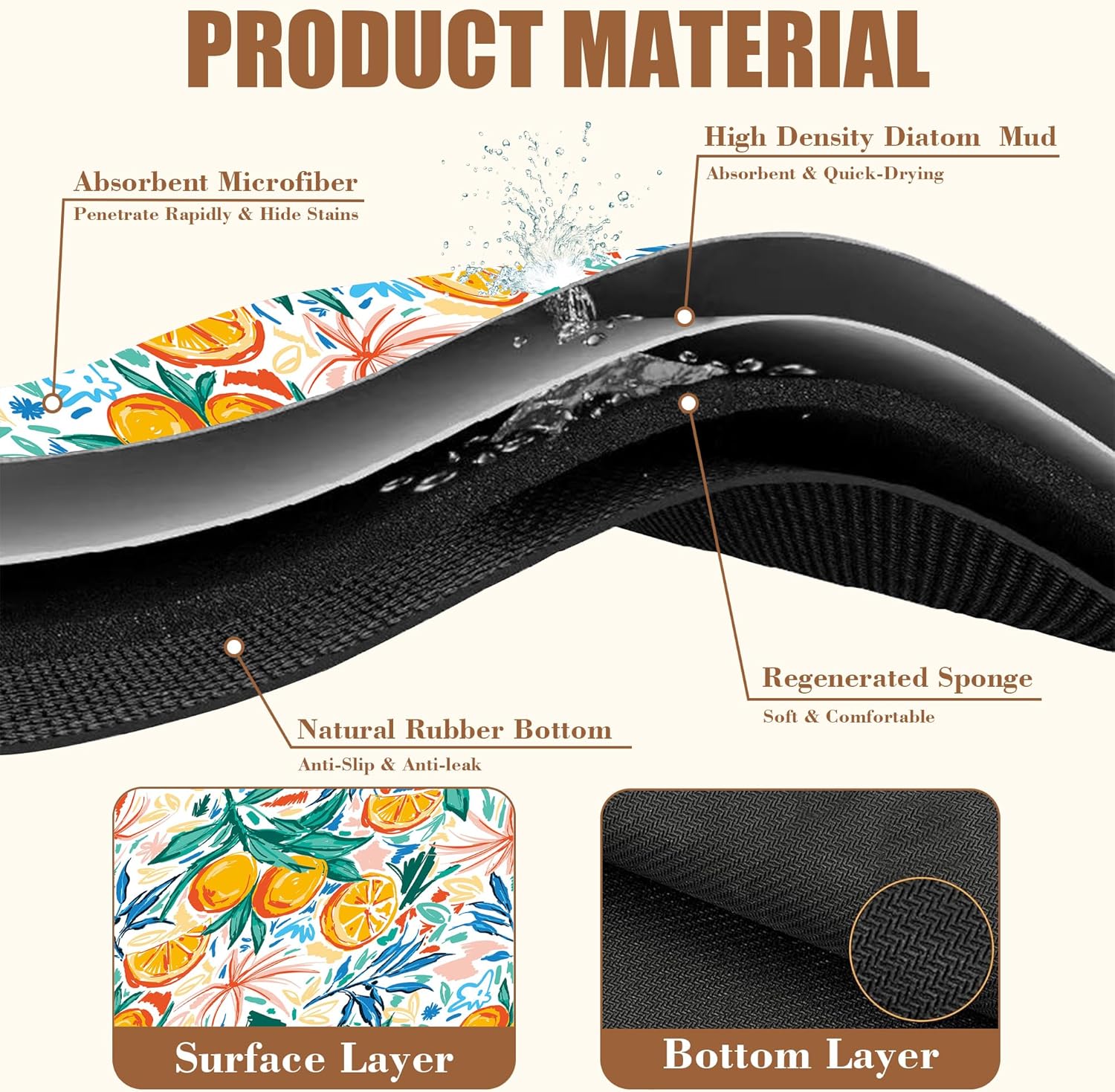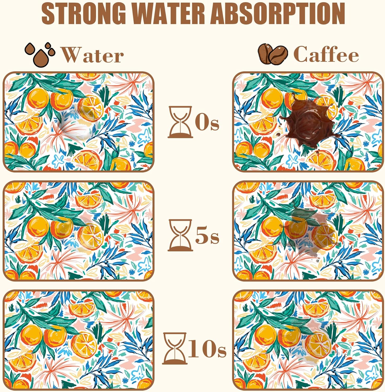 Dish Drying Mat Fruit Orange and Leaves Coffee Bar Mat for Countertop Absorbent Coffee Mat Rubber Backed Hide Stain Dish Drainer Rack Mat Coffee Maker Coffee Pot Dining Room Decor 15.7 x 23.6 Inch