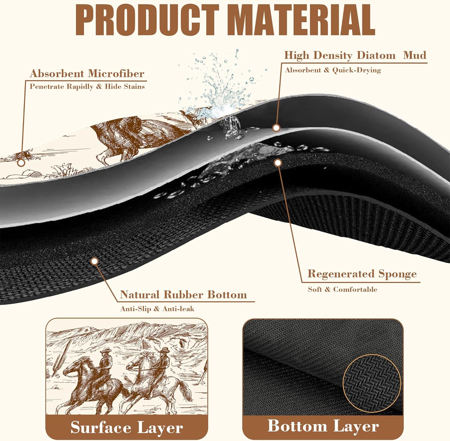 - 【Absorbent & Quick-Drying】The surface of this coffee mat is made of absorbent microfiber and the middle is made of composite sponge, which can absorb up to 4 times its weight in water and has a strong water absorption capacity. The high-density design makes it fast drying and can quickly absorb spilled liquids to keep your counter or desktop dry