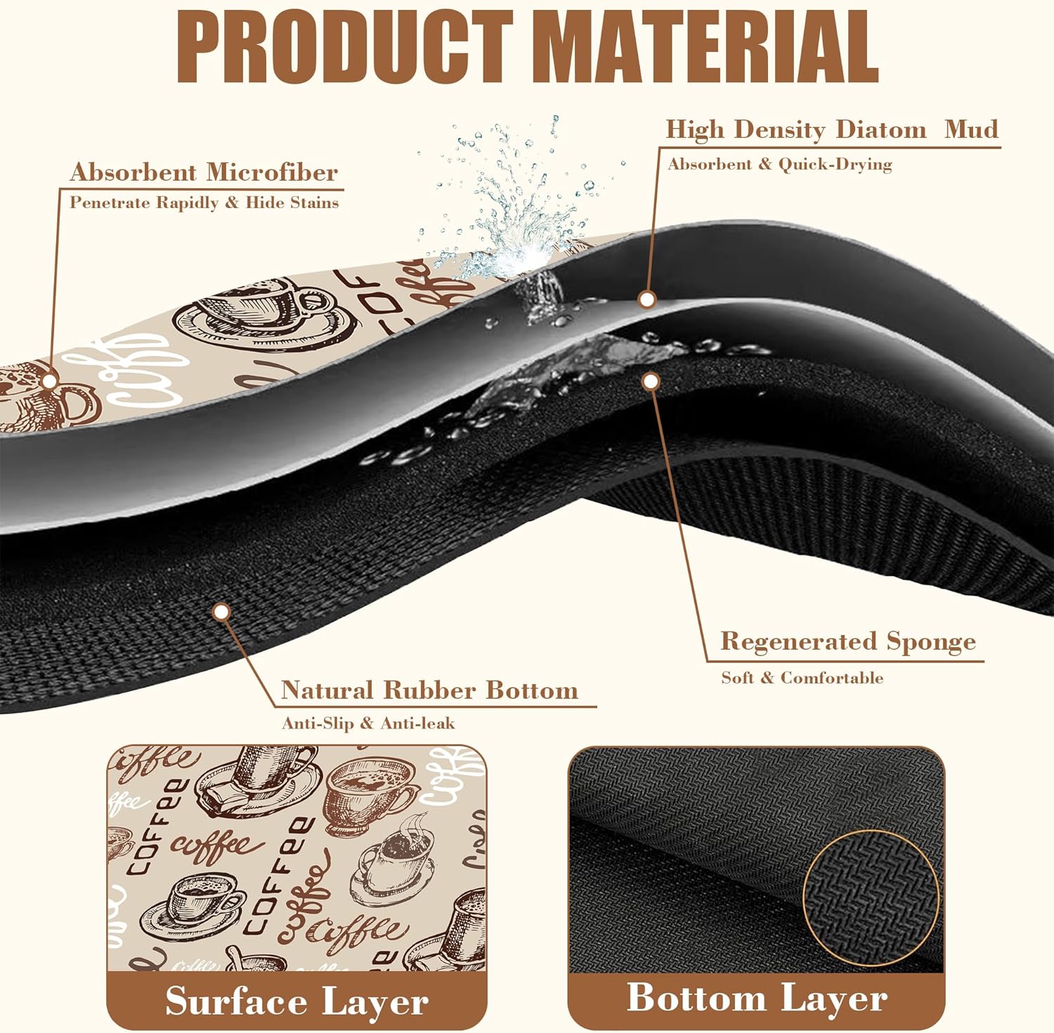 - 【Non-Slip Rubber Base】The bottom of the coffee bar mat has a non-slip textured natural rubber that can firmly grip the tabletop. Just place the coffee machine or cutlery on top, and the non-slip bottom will hold it firmly in place, also preventing liquids from seeping into the tabletop and leaving stains