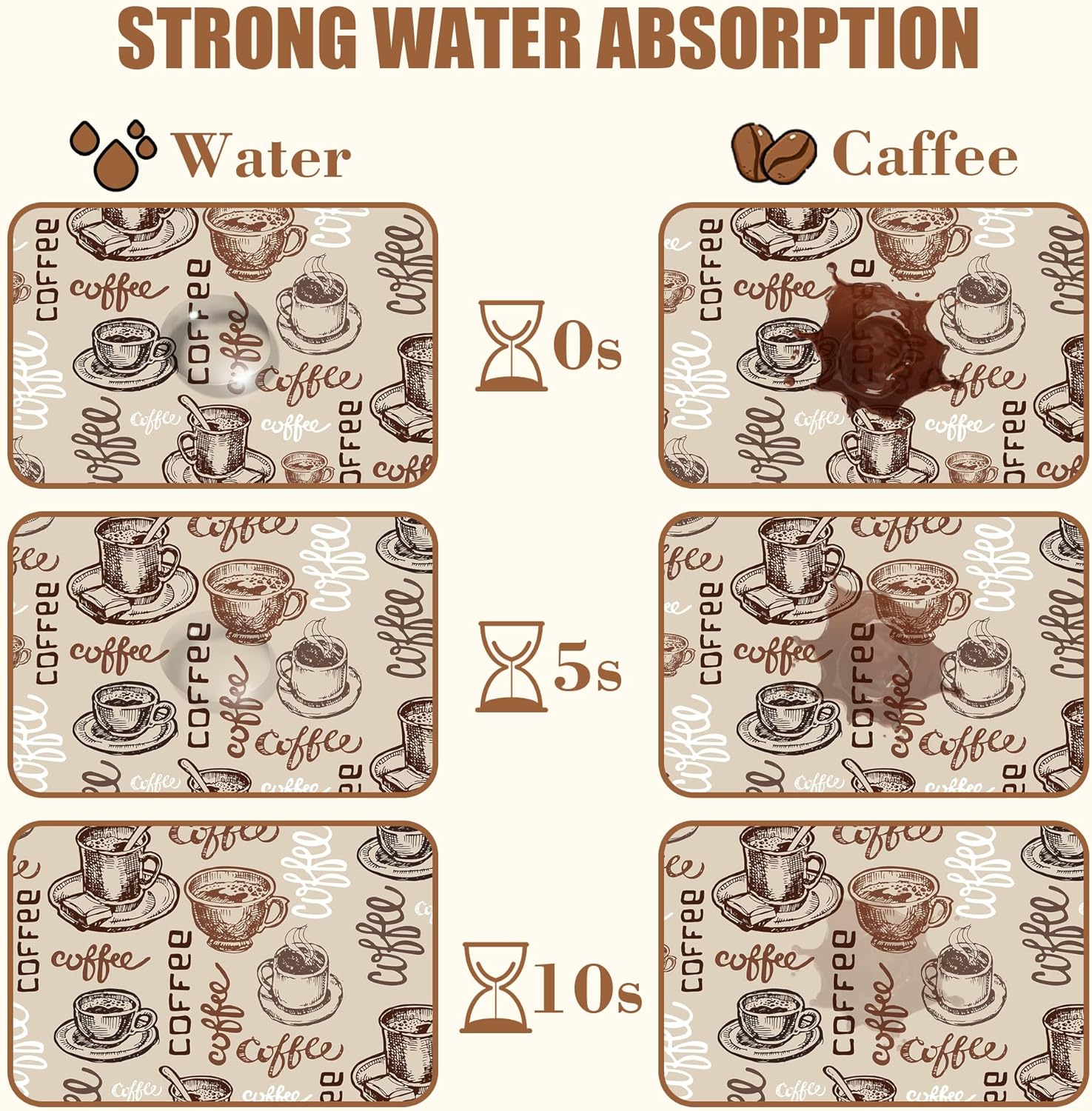 - 【Absorbent & Quick-Drying】The surface of this coffee mat is made of absorbent microfiber and the middle is made of composite sponge, which can absorb up to 4 times its weight in water and has a strong water absorption capacity. The high-density design makes it fast drying and can quickly absorb spilled liquids to keep your counter or desktop dry