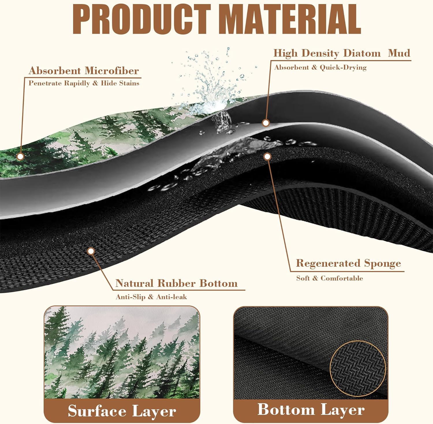 Dish Drying Mat Watercolor Foggy Forest Coffee Bar Mat for Countertop Absorbent Rubber Backed Hide Stain Dish Drainer Rack Pad Coffee Maker Espresso Machine Dining Room Decor 15.7 x 23.6 Inch