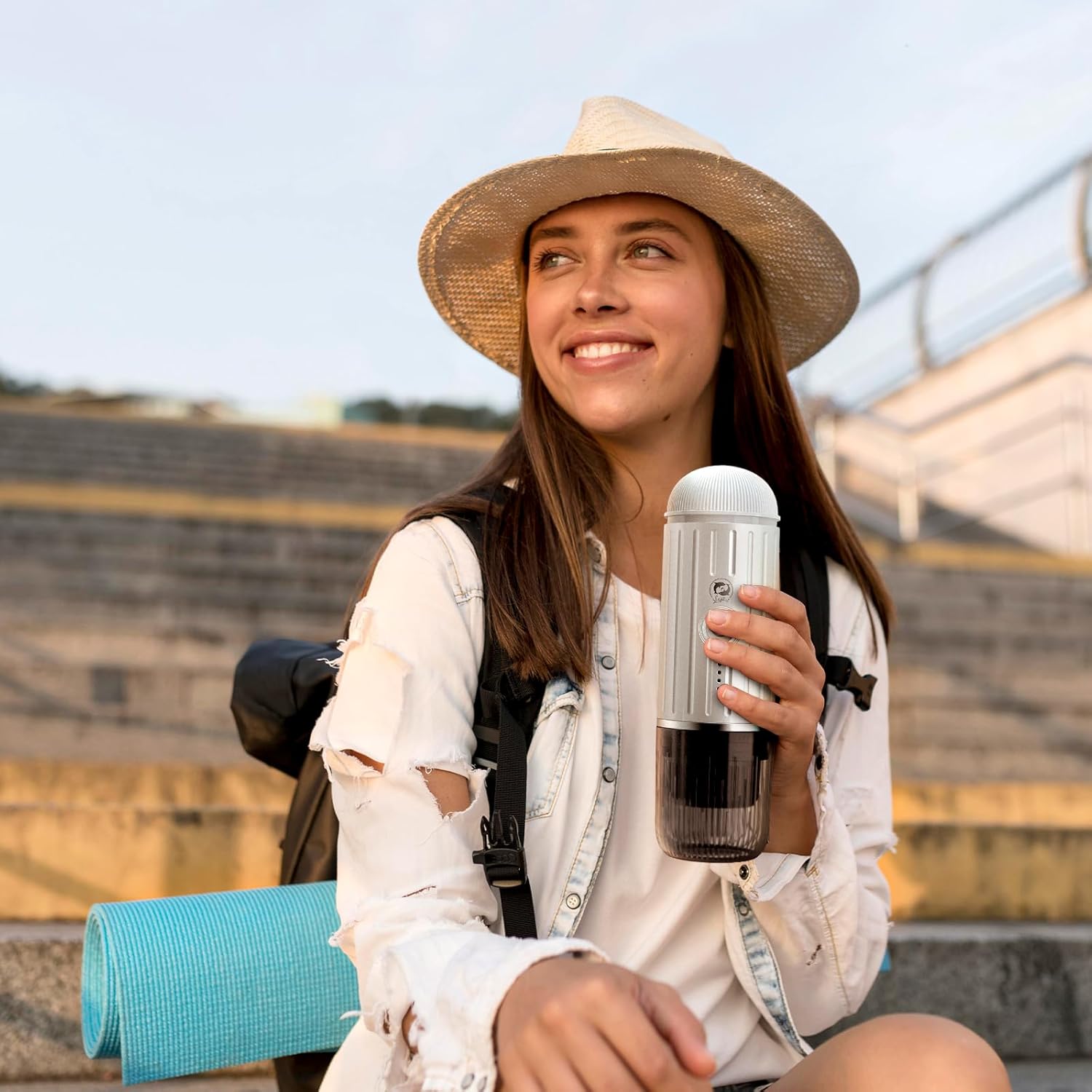 - Upgraded Portable Espresso Coffee Machine: Espresso made EASY! The most advanced mini espresso machine on the market. A higher efficiency battery allows you to brew 1 cup more than other similar products. It heats the water and extracts espresso automatically with just one press.