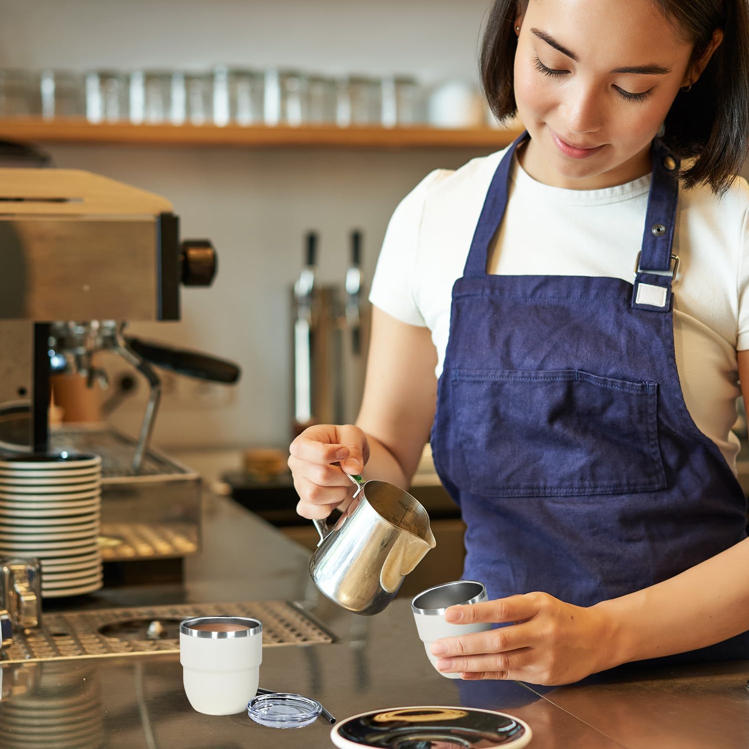- LEAKPROOF DESIGN: Are you still dealing with accidentally spilled coffee that are hard to clean? Our espresso coffee cups have leak proof lids and stainless steel straws! Espresso coffee shots cup are stackable to save space in the kitchen. Our 4oz stackable cups are ideal as espresso to go cups when you are on the go or traveling.