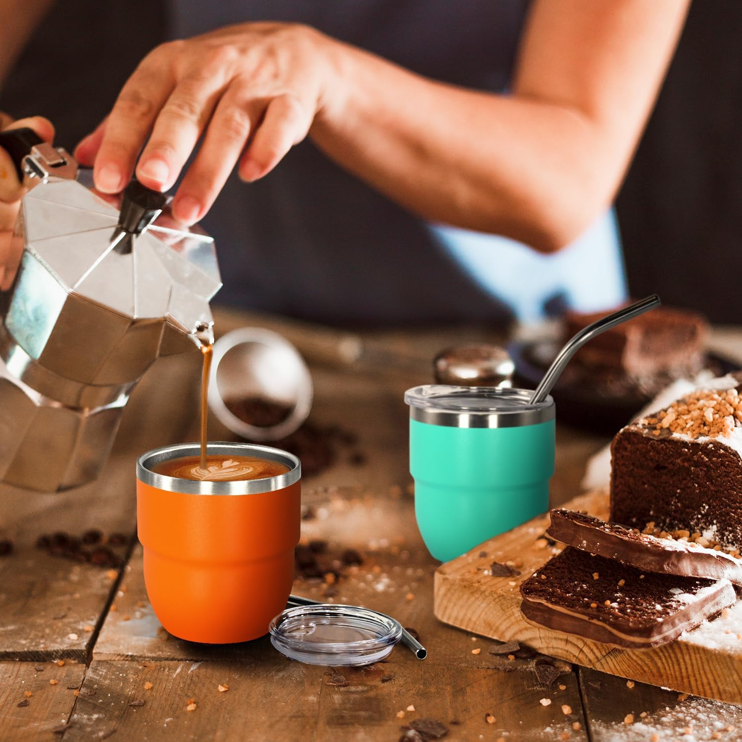 4oz Stackable Cup, Vacuum Insulated Espresso Cup Set of 6, Espresso Shot Cup for Coffee, Double Wall Stainless Steel Mini Tumbler Shot Glasses with Straw and Lid (A-mixed6P, 4oz)