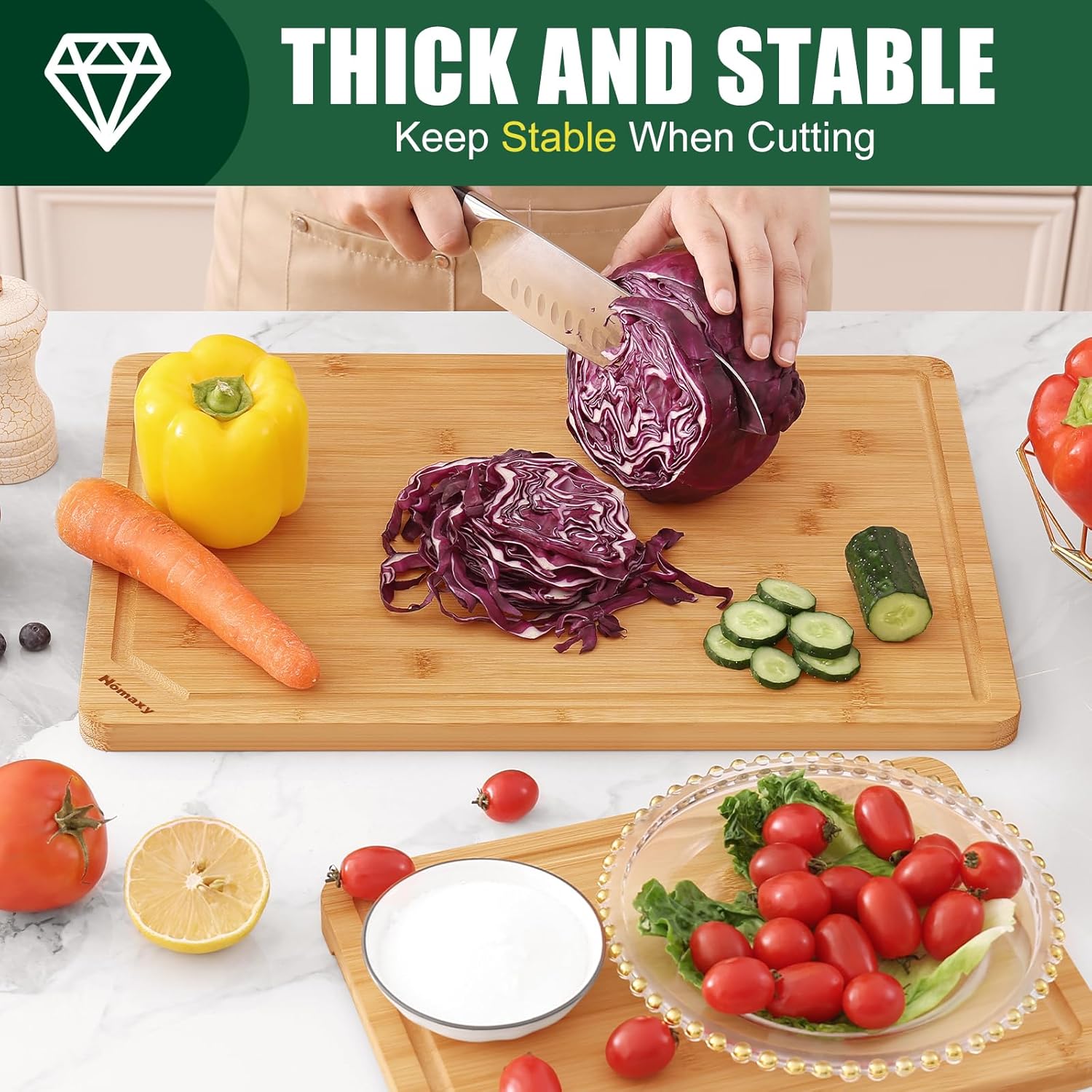 - MULTI-PURPOSE BAMBOO CUTTING BOARD SET: The Homaxy bamboo cutting board set not only makes it easy to prepare meat, vegetables, and other ingredients, but also serves as cheese deli trays, appetizer trays, and much more. Coming in a convenient set of 2, it includes 1 XL cutting board (18 x 12") and 1 Small Cutting Board (12 x 8"), allowing you to easily complete all your cutting, meal preparation, and even serving needs