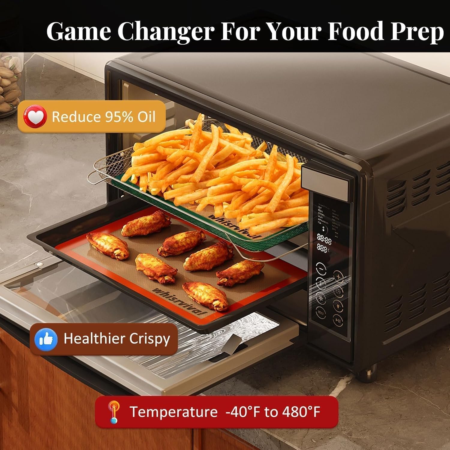 - [Even Heat Distribution for Beautiful Results]: These silicone baking sheets for oven are designed to support even heat distribution from -40°F to 480°F. Enjoy crispy, flavorful, and delicious results every time, without burnt or undercooked spots. our baking mats silicone for baking sheets are perfect for baking cookies, roasting vegetables, and any recipe that demands uniform heat