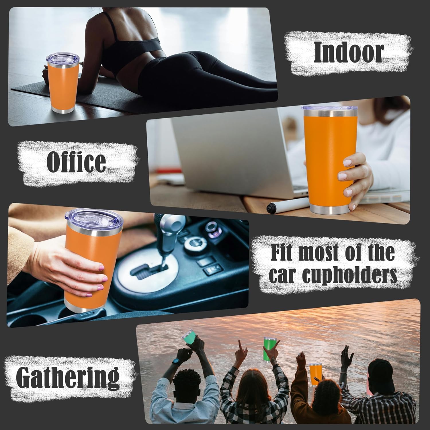 20 oz Tumbler Coffee Tavel Tumblers Bulk with Lid Stainless Steel Double Wall Vacuum Insulated Mug Powder Coated Cups fit Car Cupholder for Hot and Cold - Orange, 8Pack