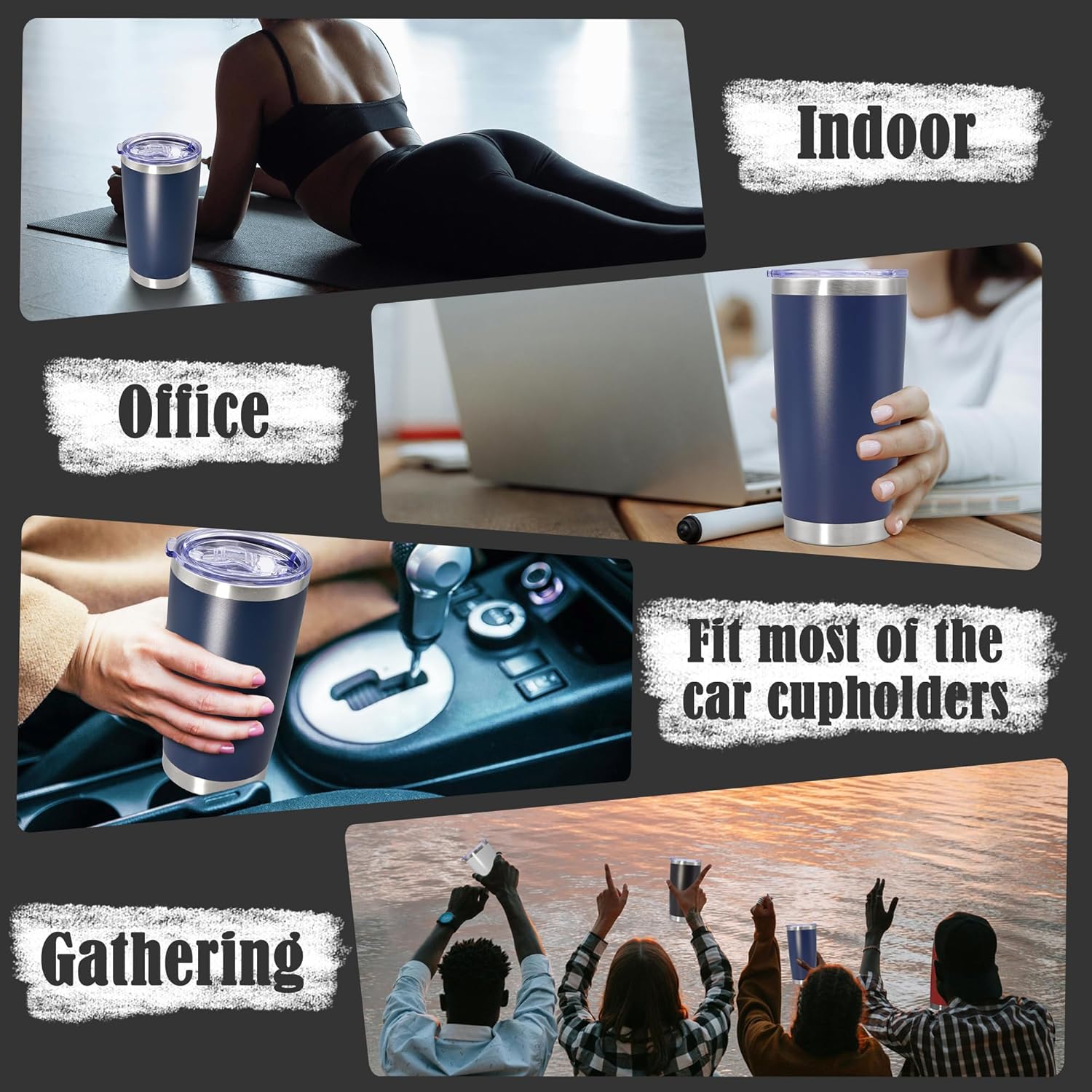 20 oz Tumbler Coffee Tavel Tumblers Bulk with Lid Stainless Steel Double Wall Vacuum Insulated Mug Powder Coated Cups fit Car Cupholder for Hot and Cold - Navy, 1Pack