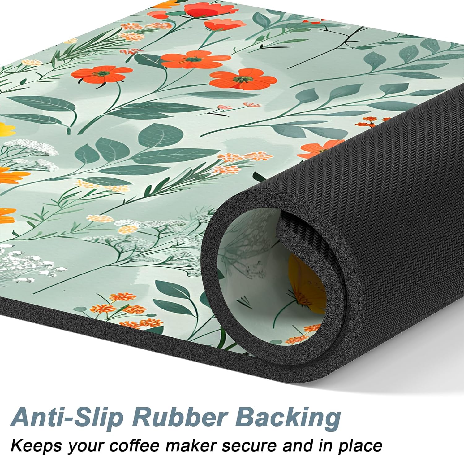 Rnivvi Coffee Mat, 12" x 19" Cute Coffee Bar Mats for Espresso Machine Station Accessories and Organizer, Hide Stain Rubber Backed Absorbent Dish Drying Pad for Kitchen Counter, Abstract Flowers