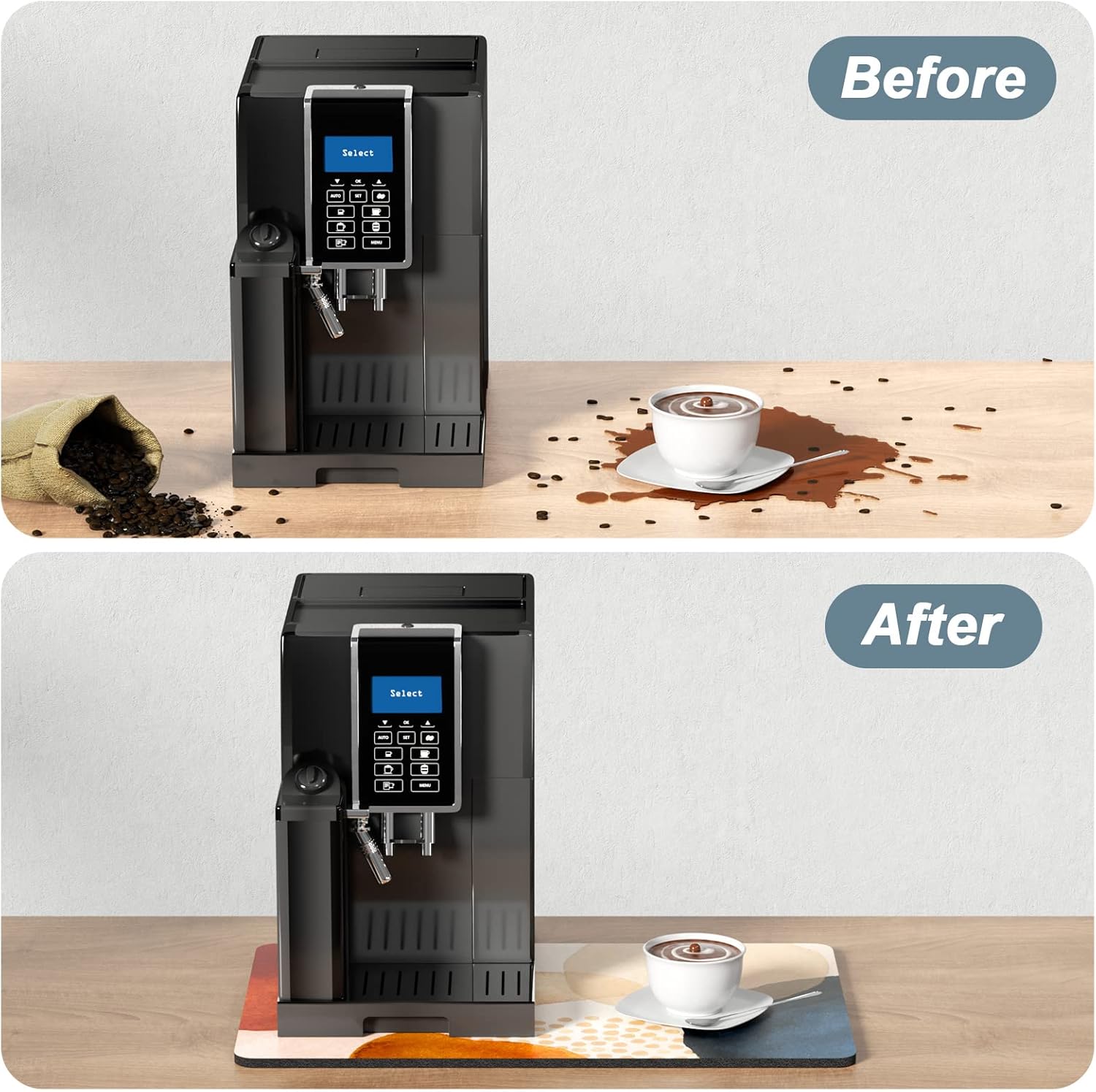 - Easy to Clean: The coffee bar mats for countertop can be cleaned with hand or machine to remove stains, up to 91% porosity material allows coffee bar mats to dry quickly without a machine