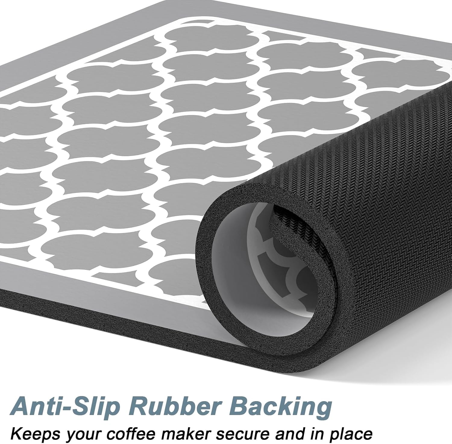 - Easy to Clean: The coffee bar mats for countertop can be cleaned with hand or machine to remove stains, up to 91% porosity material allows coffee bar mats to dry quickly without a machine