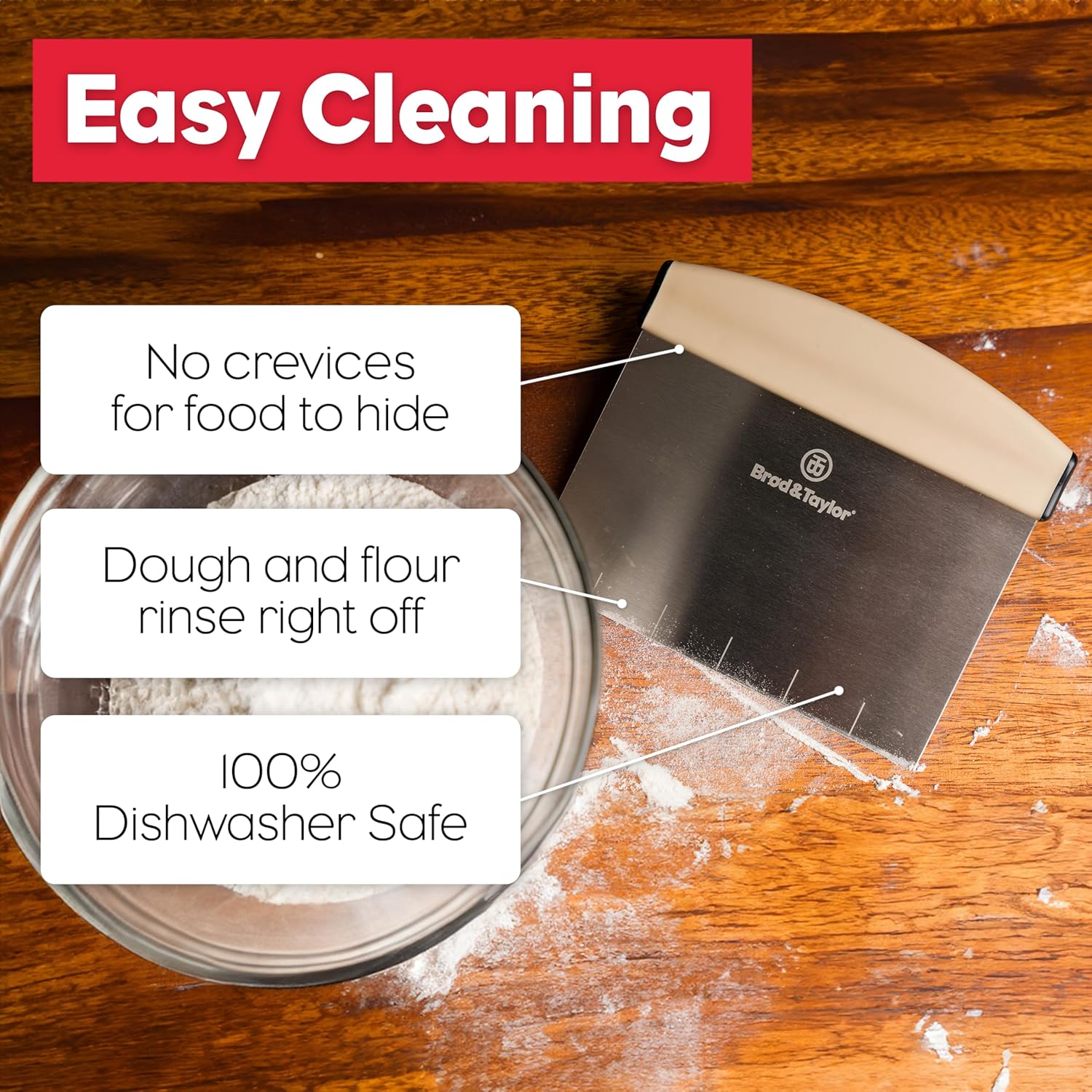 - EASY CLEANUP & CARE – 100% dishwasher-safe with no crevices for food to hide. Dough and flour rinse right off. This versatile baking tool makes cleanup quick for sourdough baking, pastry work, and everyday cooking.