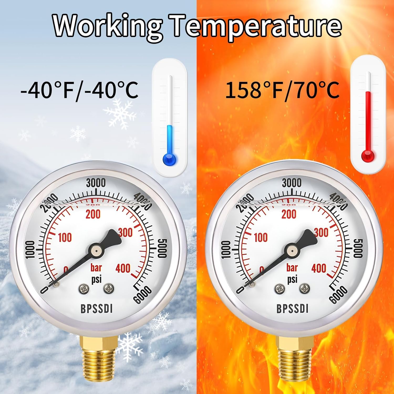 - Weather and Temperature Resistant - The pressure gauge can be used in environments from -40°C to 70°C in a variety of climates.