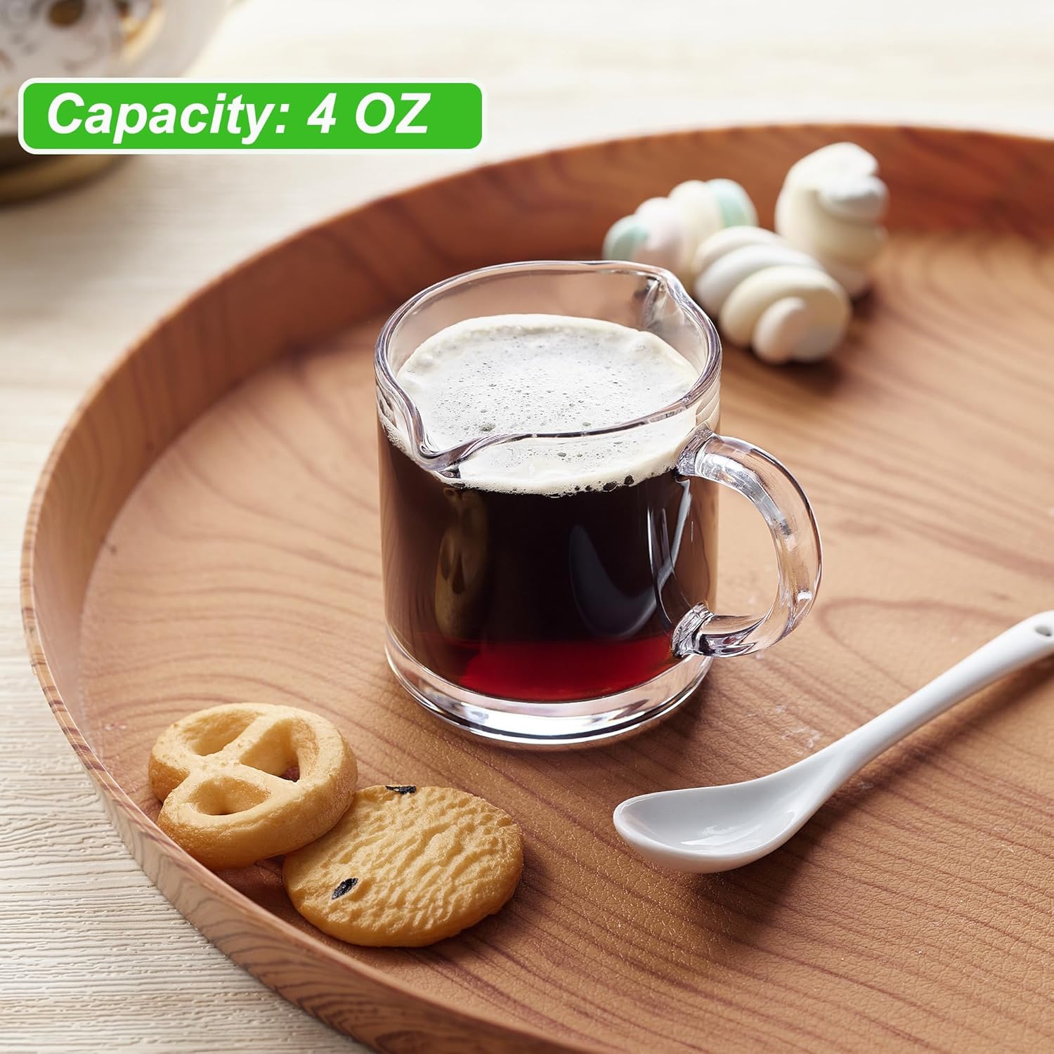 - ăMULTI-PURPOSE ESPRESSO CUPă Sleek clear espresso glasses with smooth linesâperfect for espresso shots, milk, froth, smoothies, or desserts. Also works as a tiny espresso cup, coffee expresso shots cup, or clear espresso shot glass for sauces and condiments