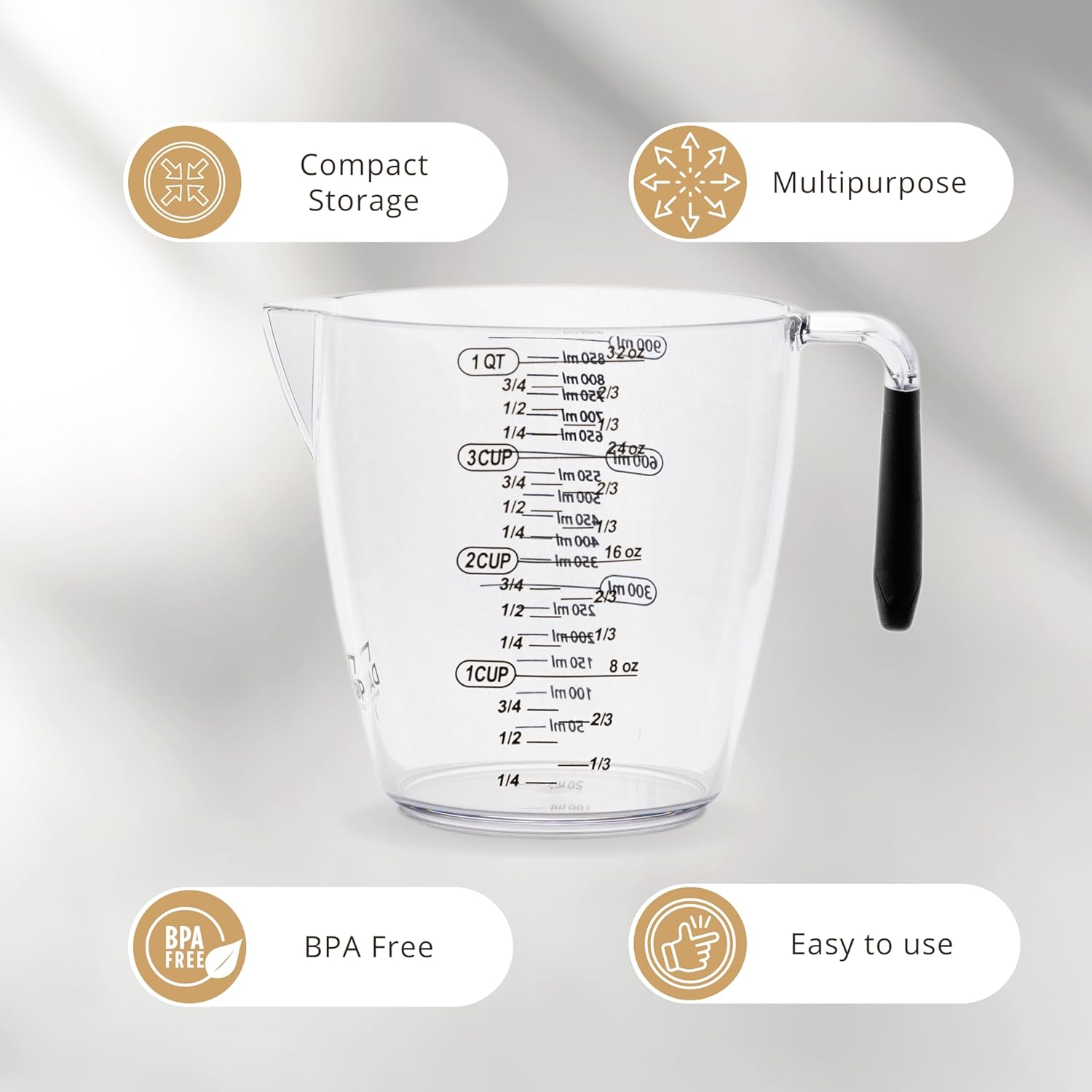 - Handles Heat – Our clear, BPA-free plastic measuring cups are designed to face the rigors of daily cooking and baking. These cups are resilient, capable of enduring temperatures up to 170°F.
