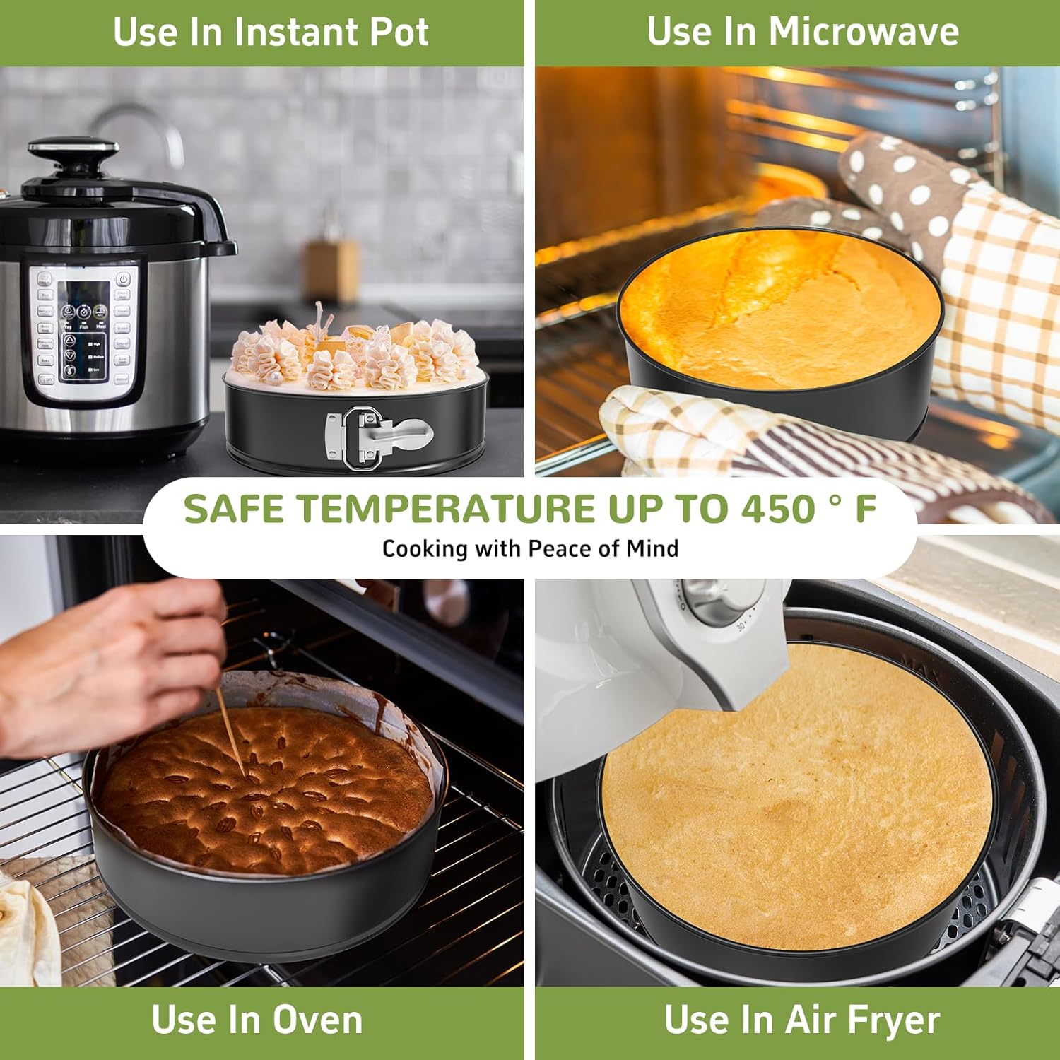 - Size: ZeroPone Spring Form Pan for Cheesecake: Diameter 10” /height 2.6”, please check the size carefully before ordering. High-quality materials enable the pan to heat up quickly and evenly in the microwave or oven. It is safe up to 450 degrees Fahrenheit