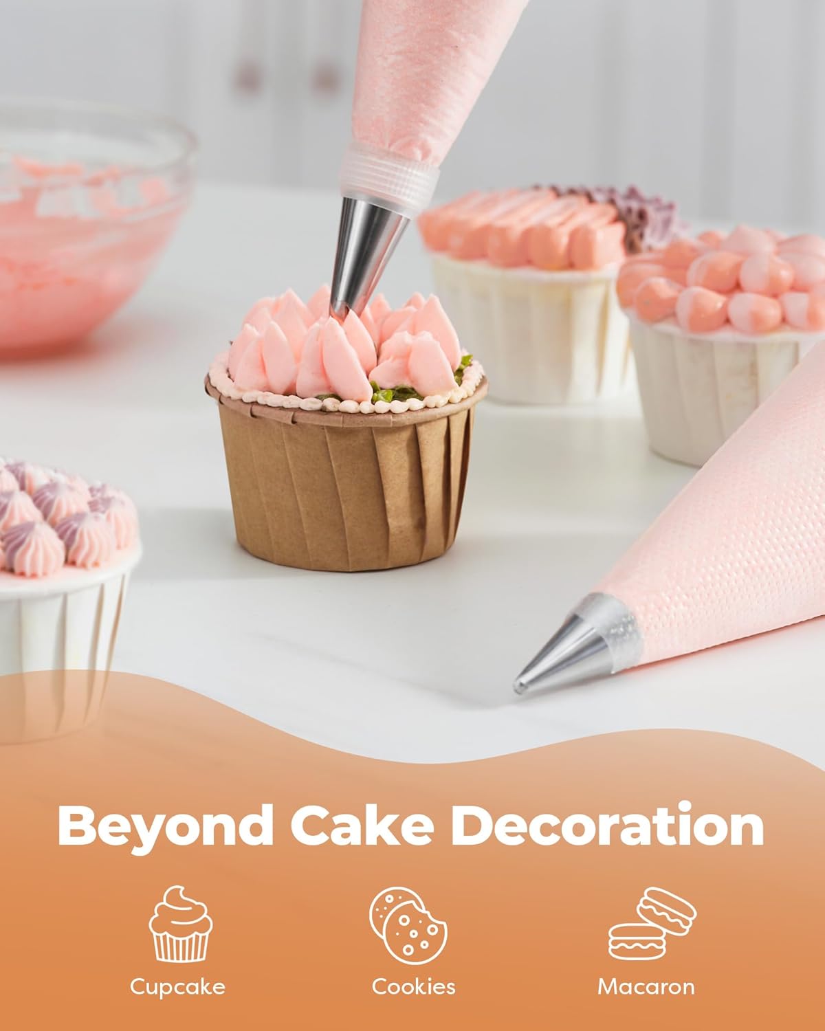 - Perfect for Various Occasions: With this complete piping bags and tips set, you can create professional-looking cupcakes, cakes, bread, biscuits, and other desserts for different occasions, such as birthdays, weddings, housewarming, or anniversaries. Create beautiful and inviting desserts that will impress your guests at many event.