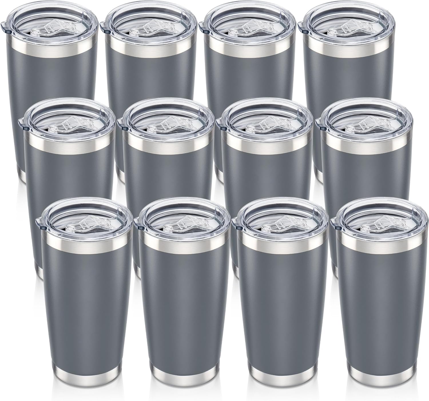 20 oz Tumbler with Lid Stainless Steel Insulated Tumblers Bulk Double Wall Vacuum Cups Powder Coated Travel Mug Keep Drinks Cold and Hot, Grey, 12 Pack