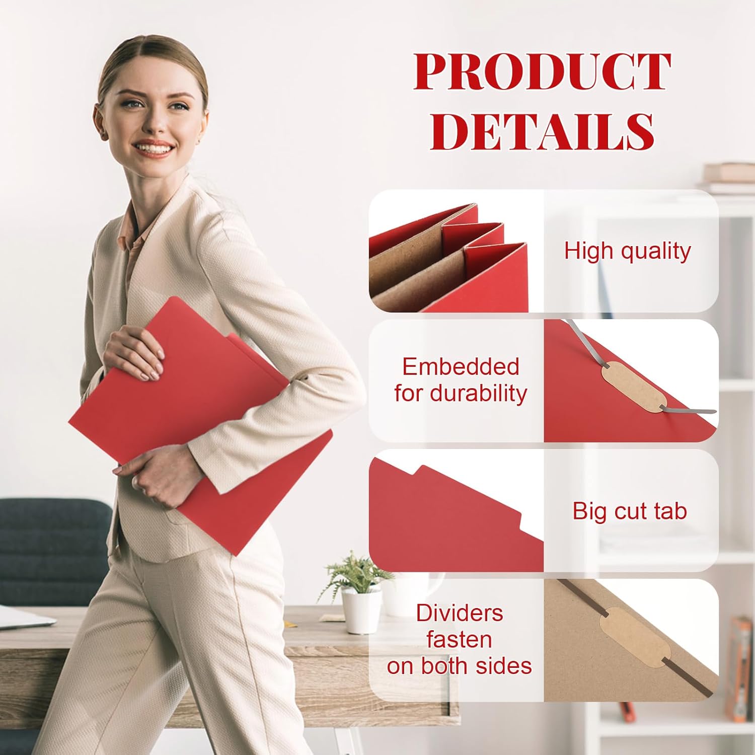 24 Pcs Classification Folders Letter Size, Back to School Supply for Teacher, Student, 2 Pocket Dividers Pressboard File Folder Bulk with 2 Fasteners, 2 in Expanding File Organizer (Red)