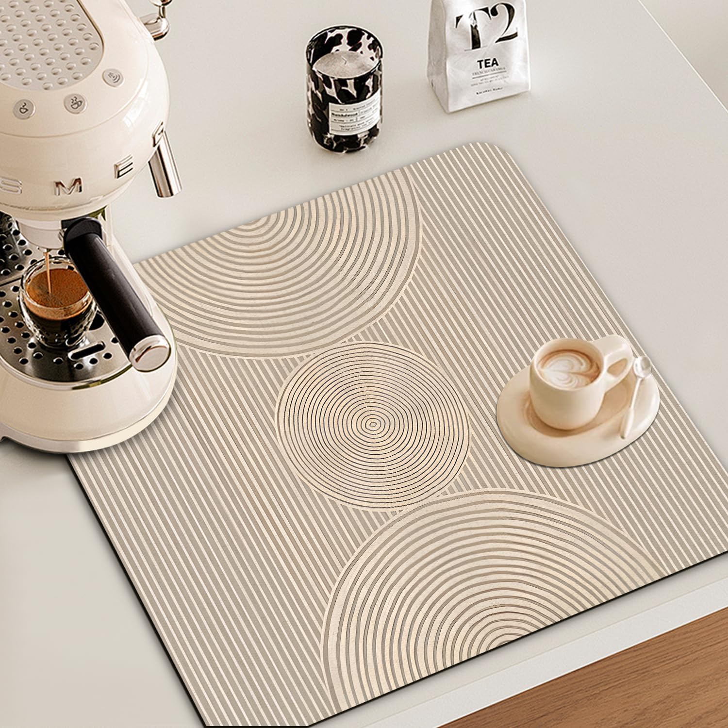 - 【Non-slip & Sturdy】Featuring a rubber backing with an anti-slip texture, our drying mat firmly grips the floor and prevents water from permeating onto your table. Perfect for use as a kitchen or coffee bar accessory and organizer.