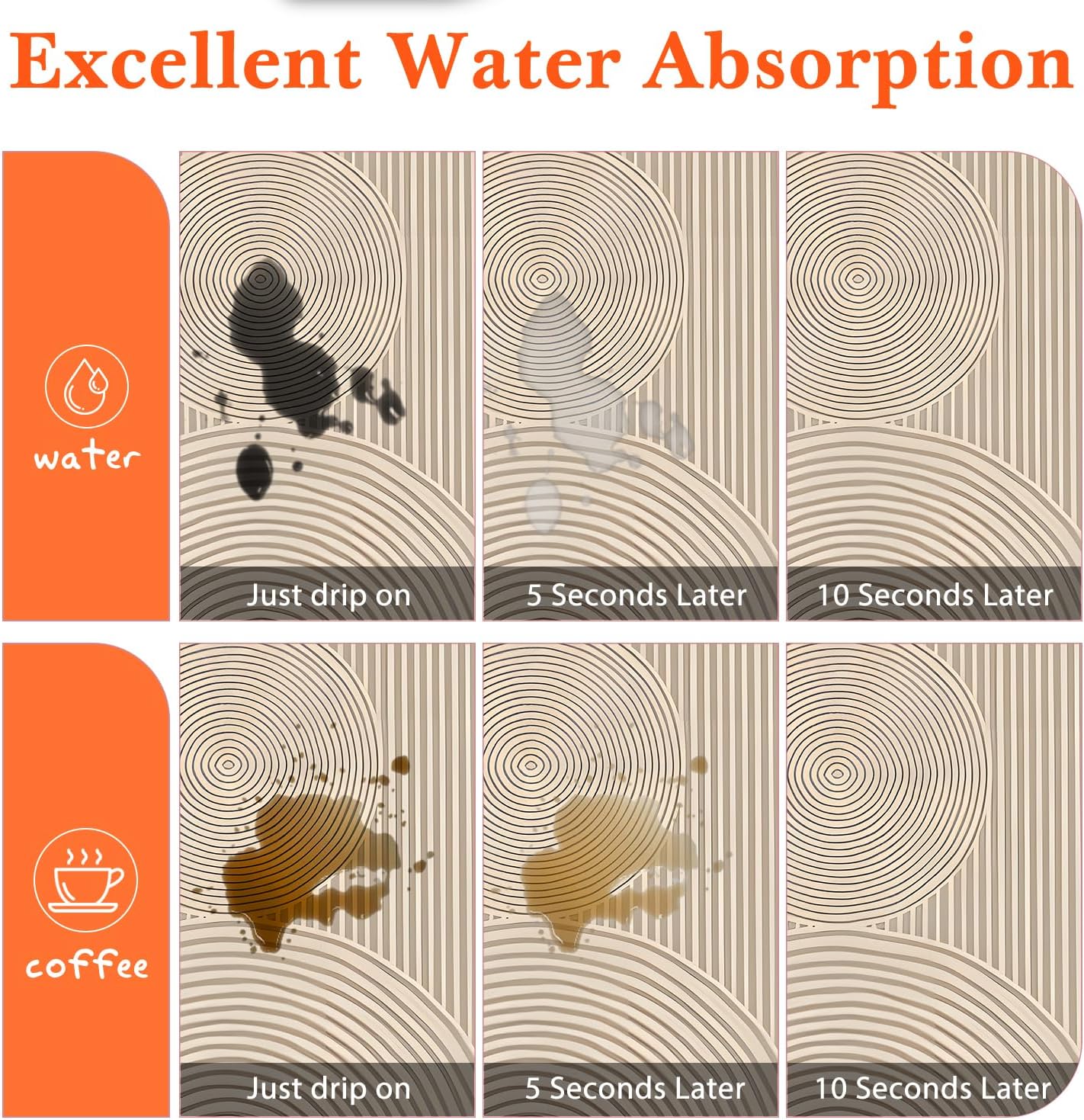 - 【Exceptional Absorbency】Our kitchen drying mat is constructed from super absorbent material, providing a soft and highly absorbent surface that dries quickly. Say goodbye to damp or wet countertops in your kitchen!