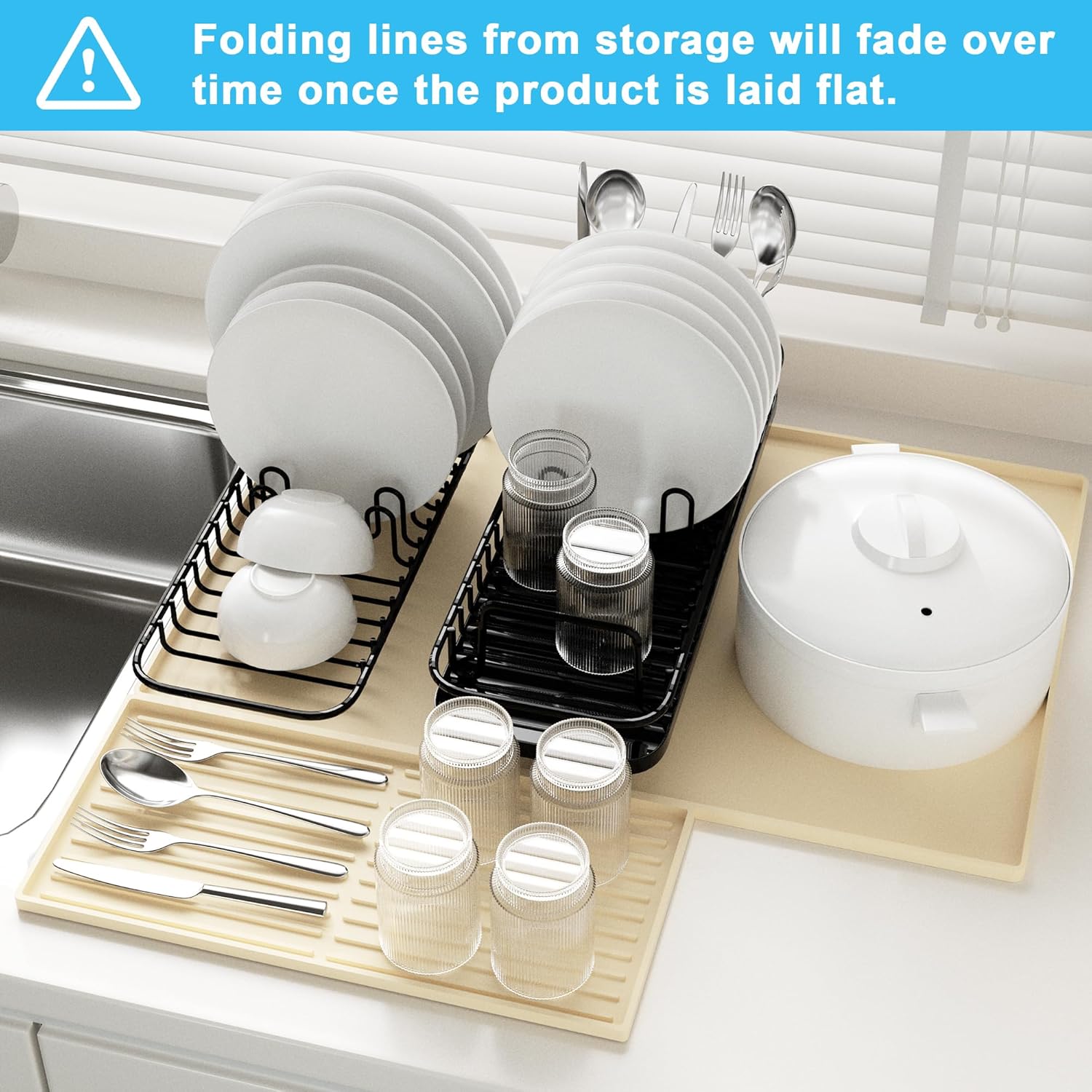- ๐๐๐ฌ๐ฒ ๐ญ๐จ ๐๐ฅ๐๐๐ง ๐๐ง๐ ๐๐ญ๐จ๐ซ๐: The silicone mat is simple to cleanโjust wipe off spills or place it in the dishwasher. Its soft and flexible material allows for easy rolling or folding, saving space in your kitchen. This dish drainer for kitchen counter is a essential item for first apartment can also be used as a drawer liner or a cabinet liner, also a good pet feeding mat.