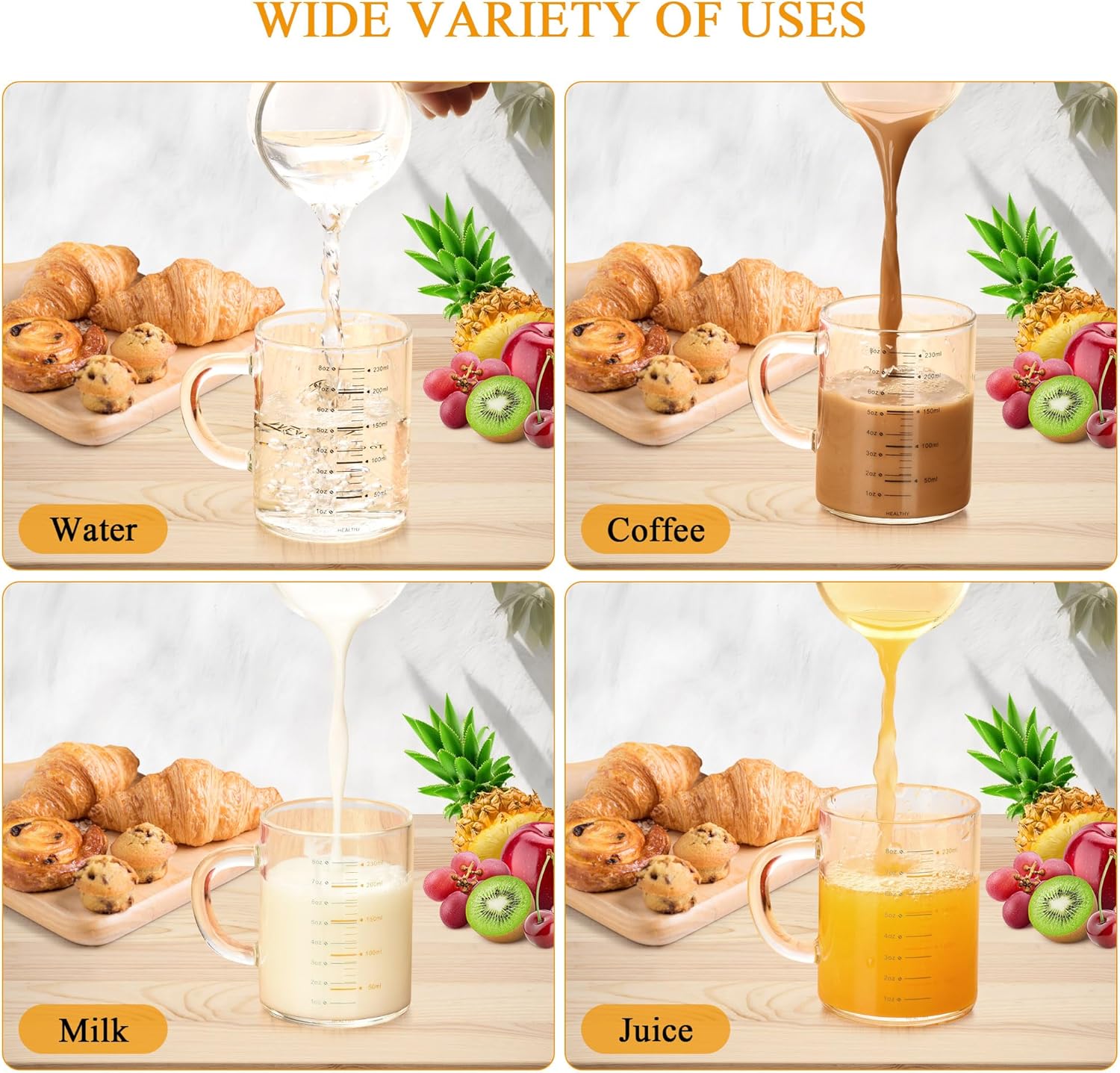 8 Oz Glass Measuring Cup Espresso shot glasses Clear Coffee Mugs for Hot or Cold Glass Expresso Small Coffee Cup with Glass Handle High Borosilicate Glass Cup (Colorful)