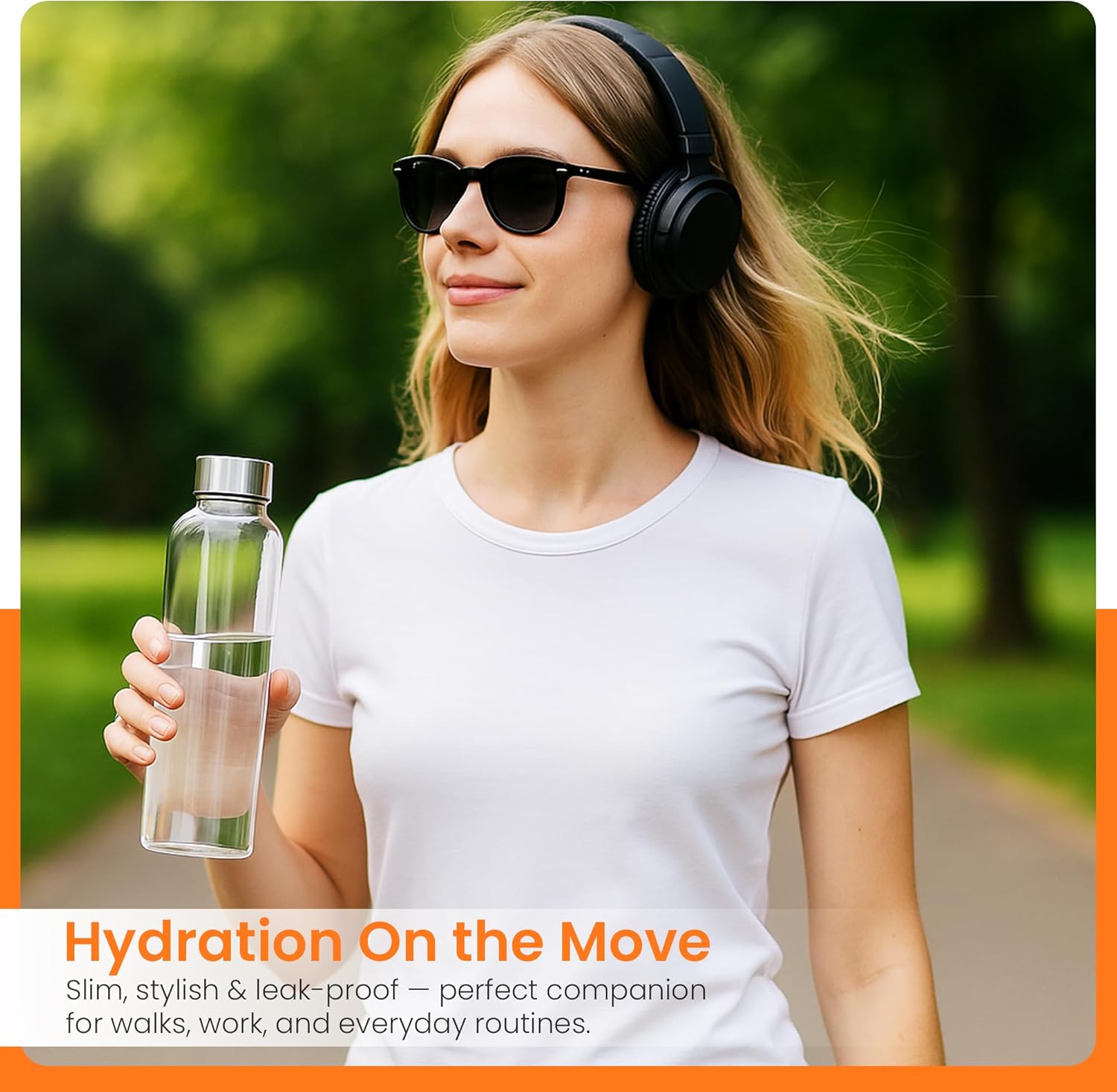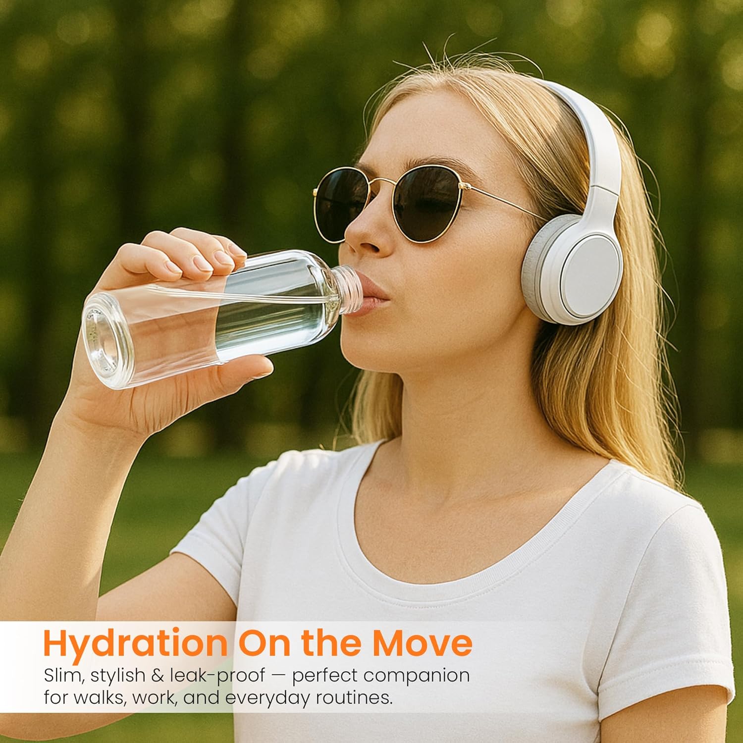 Epica 18-Oz Glass Water Bottles with Lids, Juice Bottles - BPA Free & Eco-Friendly Reusable Refillable Bottles for Juicing, Set of 4 - Clear