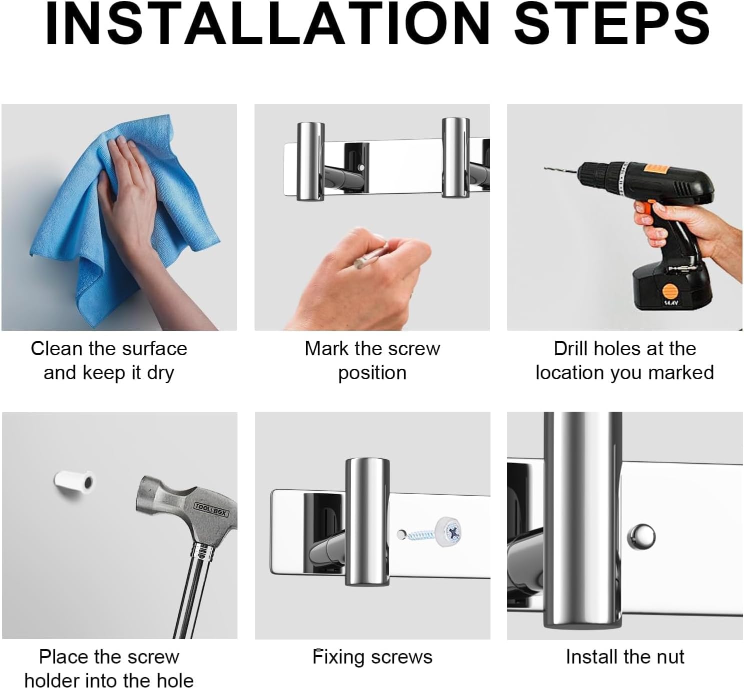- Versatile Use: This Polished Chrome Hook Coat Rack for various locations, including bathrooms, kitchens, living rooms, entrances, and offices. Use it to hang towels, kitchenware, coats, hats, jackets, wallets, keys, and more, adding functionality and organization to your space.