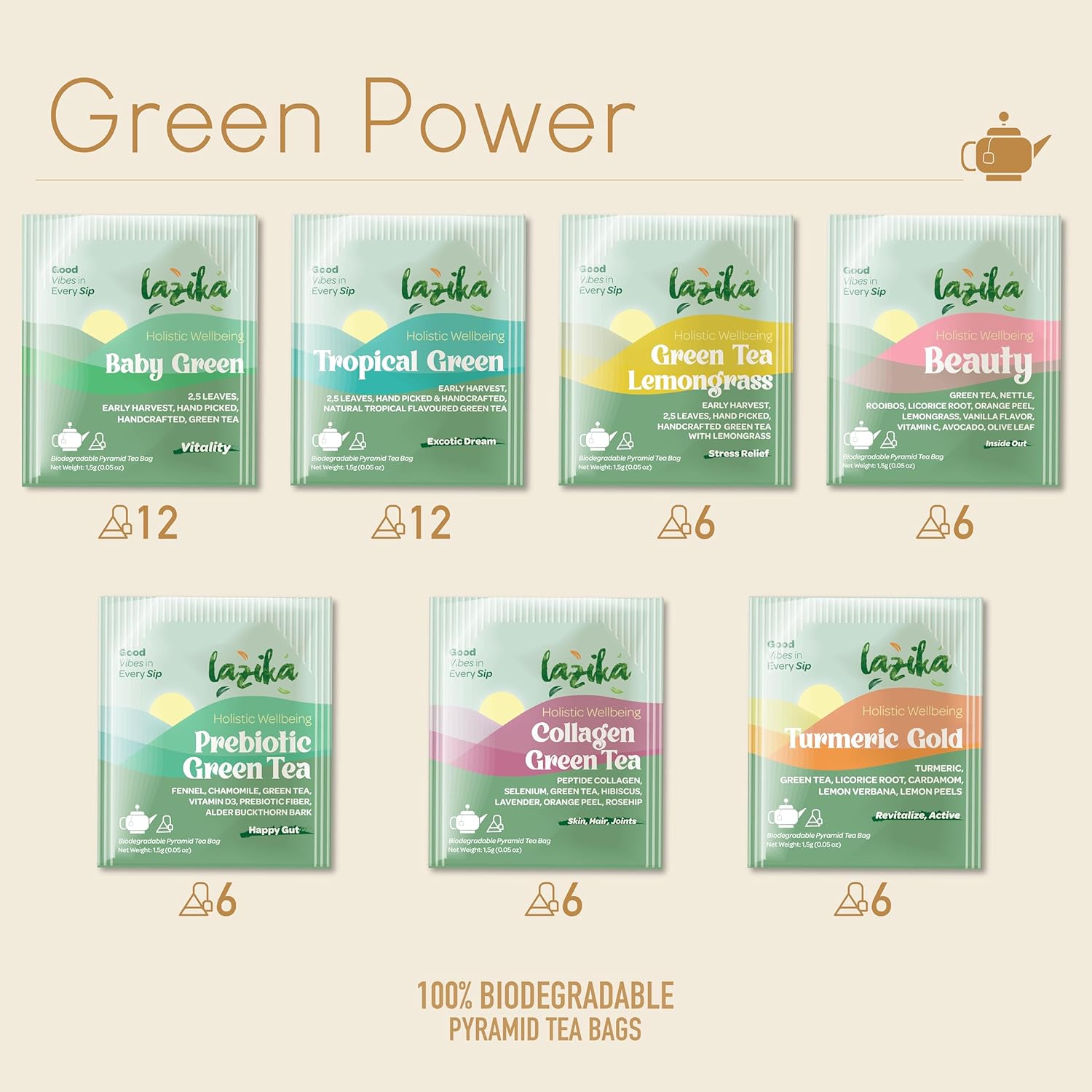 Lazika Green Tea Variety Pack with Lovely Presentation Box, 54 Counts, Green Tea Assortment Gift Set, Premium Collection with Pyramid Infuser Bag, Early Harvest, Handcrafted