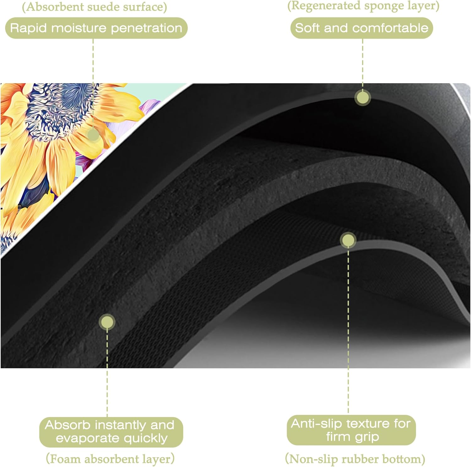 Dish Drying Mat Watercolor Sunflowers Irisflowers Floral Kitchen Mat 16"x24" Bsorbent Coffee Maker Mat for Dishes,Utensils Coffee Maker Pots and Pans Easy Clean Dish Slip Resistant Pad