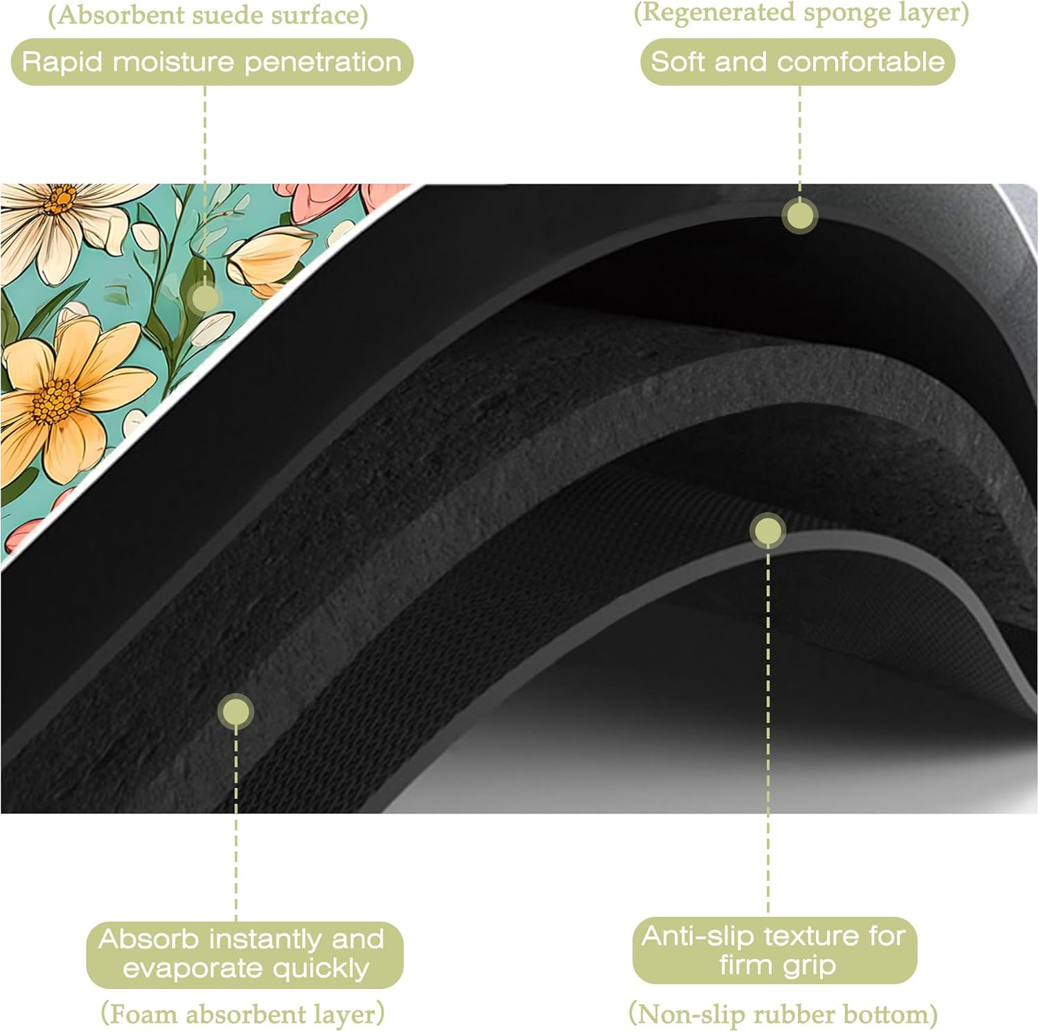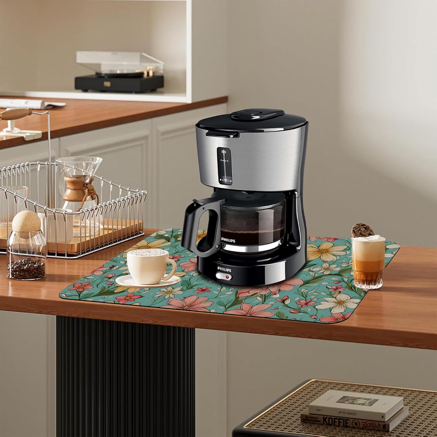Dish Drying Mat Spring Flower Kitchen Mat 12"x19" Bsorbent Coffee Maker Mat for Dishes,Utensils Coffee Maker Pots and Pans Easy Clean Dish Slip Resistant Pad