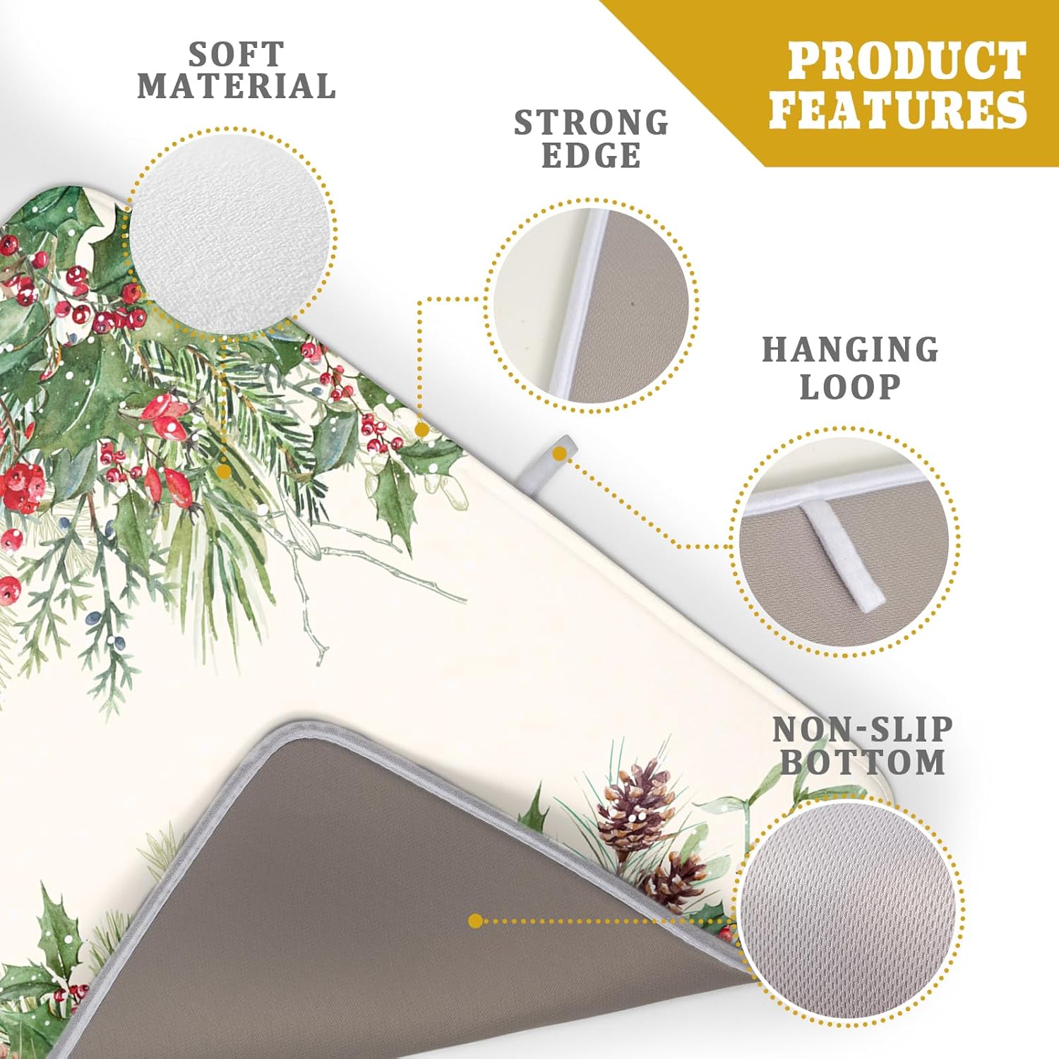 Giwawa Poinsettia Dish Drying Mat for Countertop 18"x24" Christmas Red Floral Winter Holly Berries Dish Drainer Mats Absorbent Microfiber Dish Drying Pad Protector for Kitchen Home Decor Large