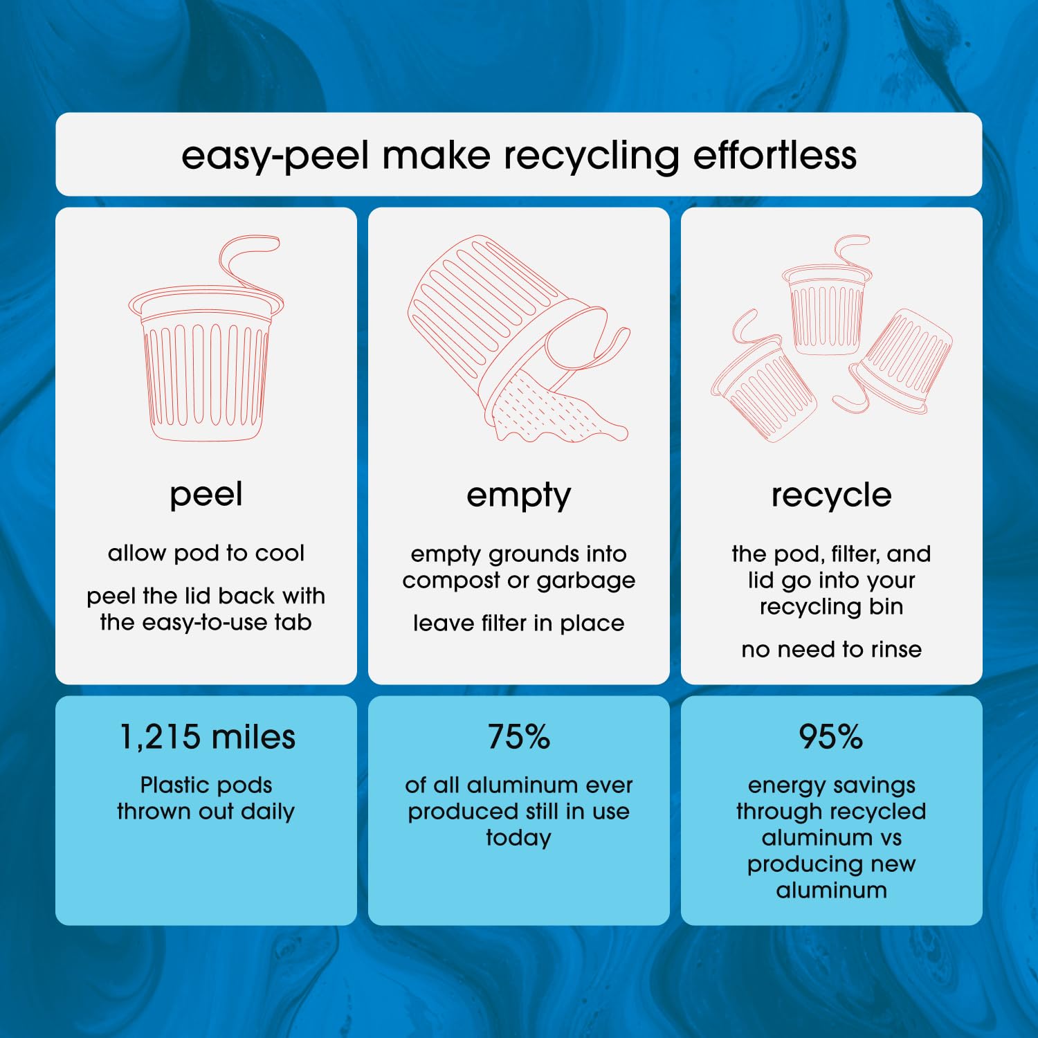 - Flavor Ridges: Each aluminum coffee k cup is designed with Flavor Ridges that provide more surface area for Cambio Coffee grounds, promoting more thorough water interaction during brewing. This optimized coffee pod design extracts 34% more flavor compared to standard pods.