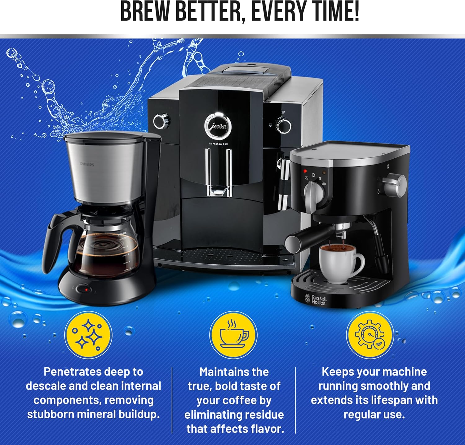- Comprehensive Machine Care: Keep your coffee maker in peak condition with Bastion’s 24-pack of descaler cleaner tablets. Designed to dissolve tough limescale, calcium deposits, and coffee oils, these powerful cleaning tablets restore your machine’s performance and extend its lifespan. Whether you’re using a drip coffee maker, espresso machine, or single-serve brewer, Bastion ensures a fresh, flavorful brew every time. Simplify your maintenance routine and protect your investment with a cleaning solution trusted by professionals and loved by coffee enthusiasts.