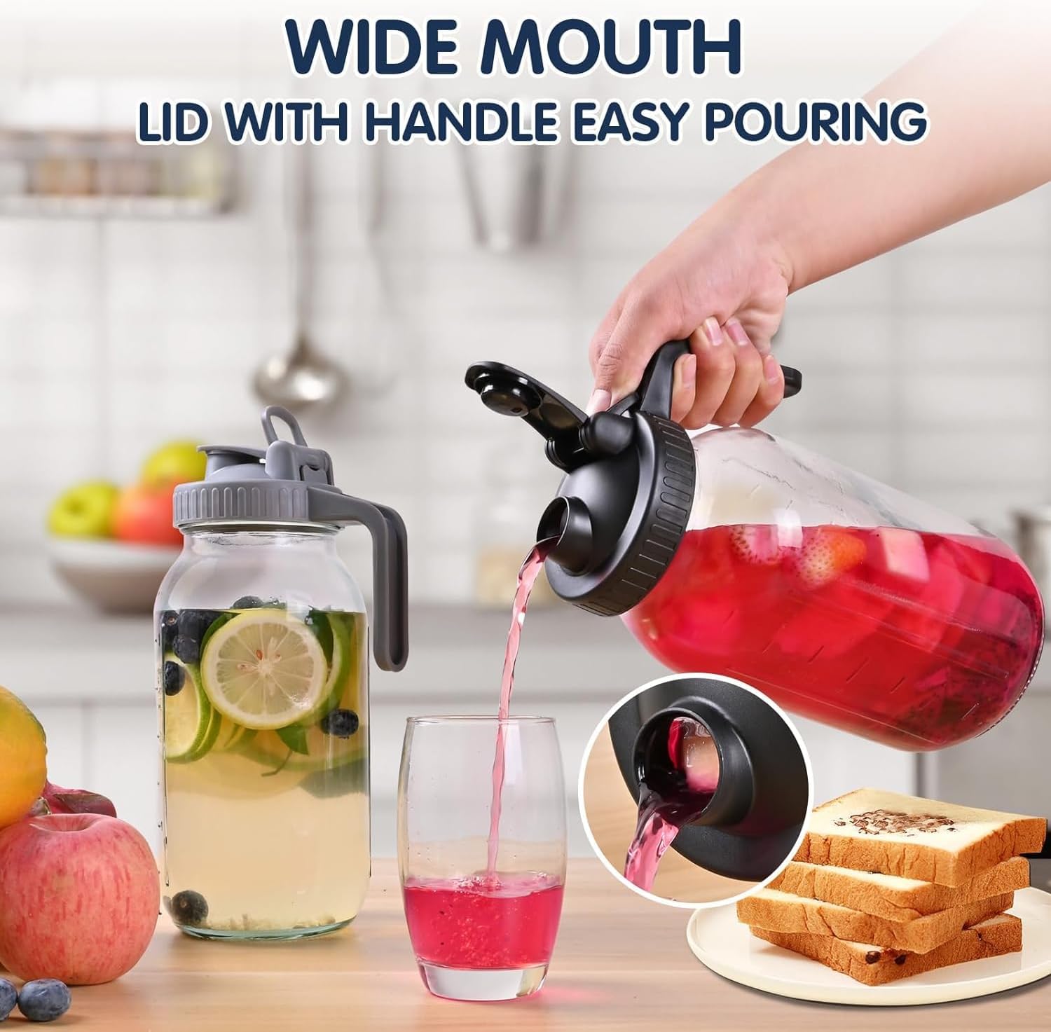 64oz Glass Pitcher with Lid, Wide Mouth Mason Jar Water Jug, Leak-Proof Airtight Mason Jar for Cold Brew Coffee, Iced Tea, Milk, Food Storage, Sun Tea Jug (Black)