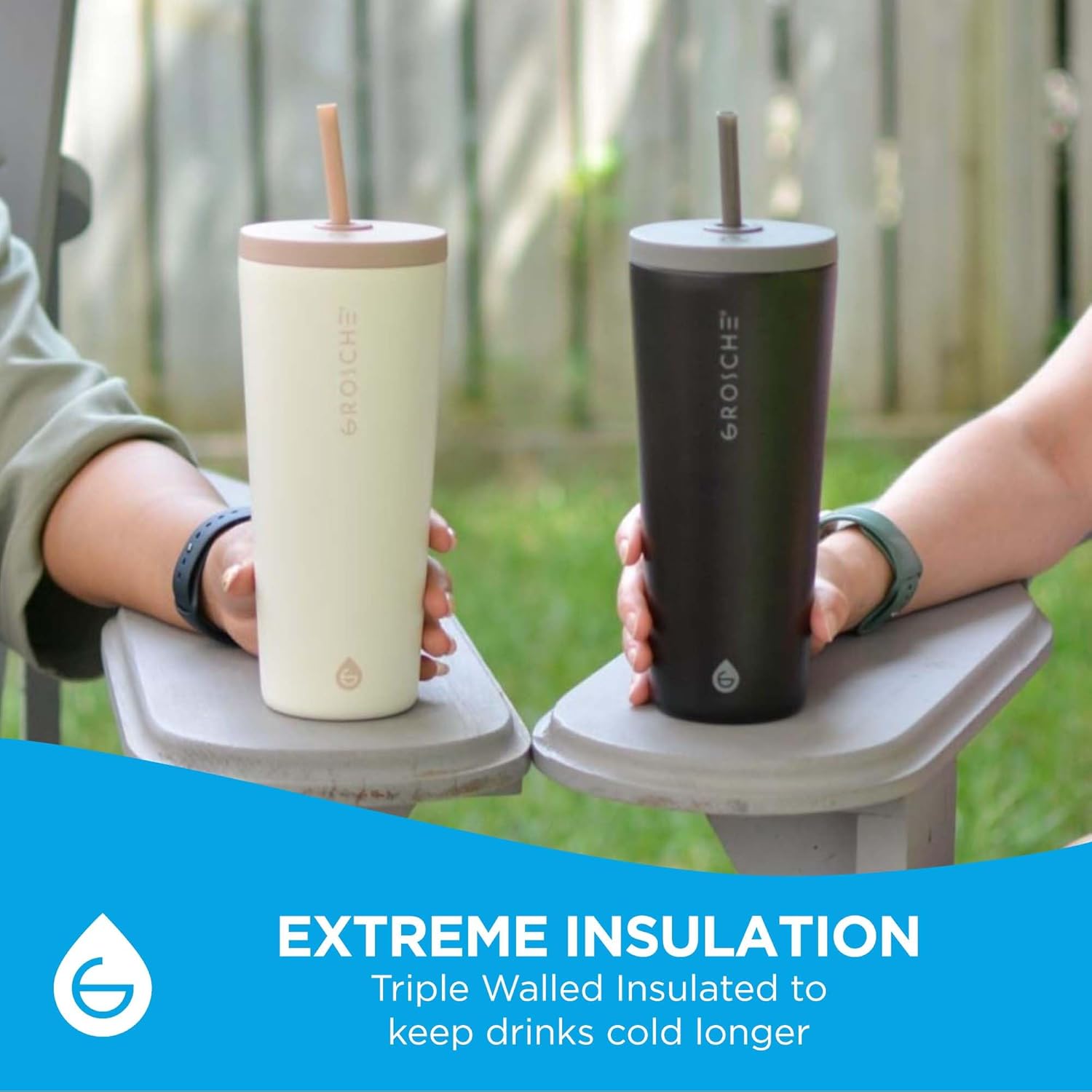 GROSCHE Jasper Insulated Stainless Steel Tumbler With Straw – Travel Cup with Lid, Extreme Insulation & Sleek Design, 23 oz - White