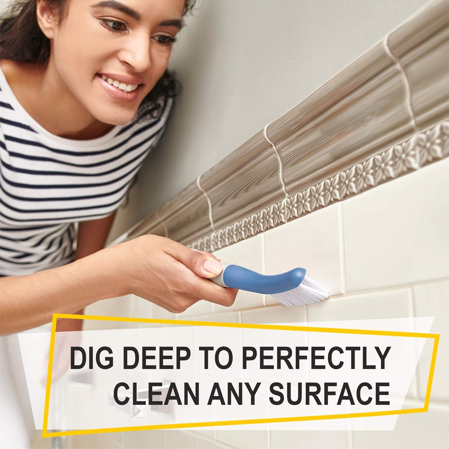 - Set of 6 Brush for Any Job: The Power Scrub brush is actually a really powerful scrubbing brush that’s sure to become one of your favorite bits of cleaning kit. The Small Scrub Brush can reach into difficult areas and leaves tiles looking like new with minimal effort. It can be used to clean around taps leaving them sparkling and free from smears and marks. Uniquely shaped bristles of the Grout Brush makes cleaning grout and corners fast and easy. Tough bristles scrub away grime and soap scum.