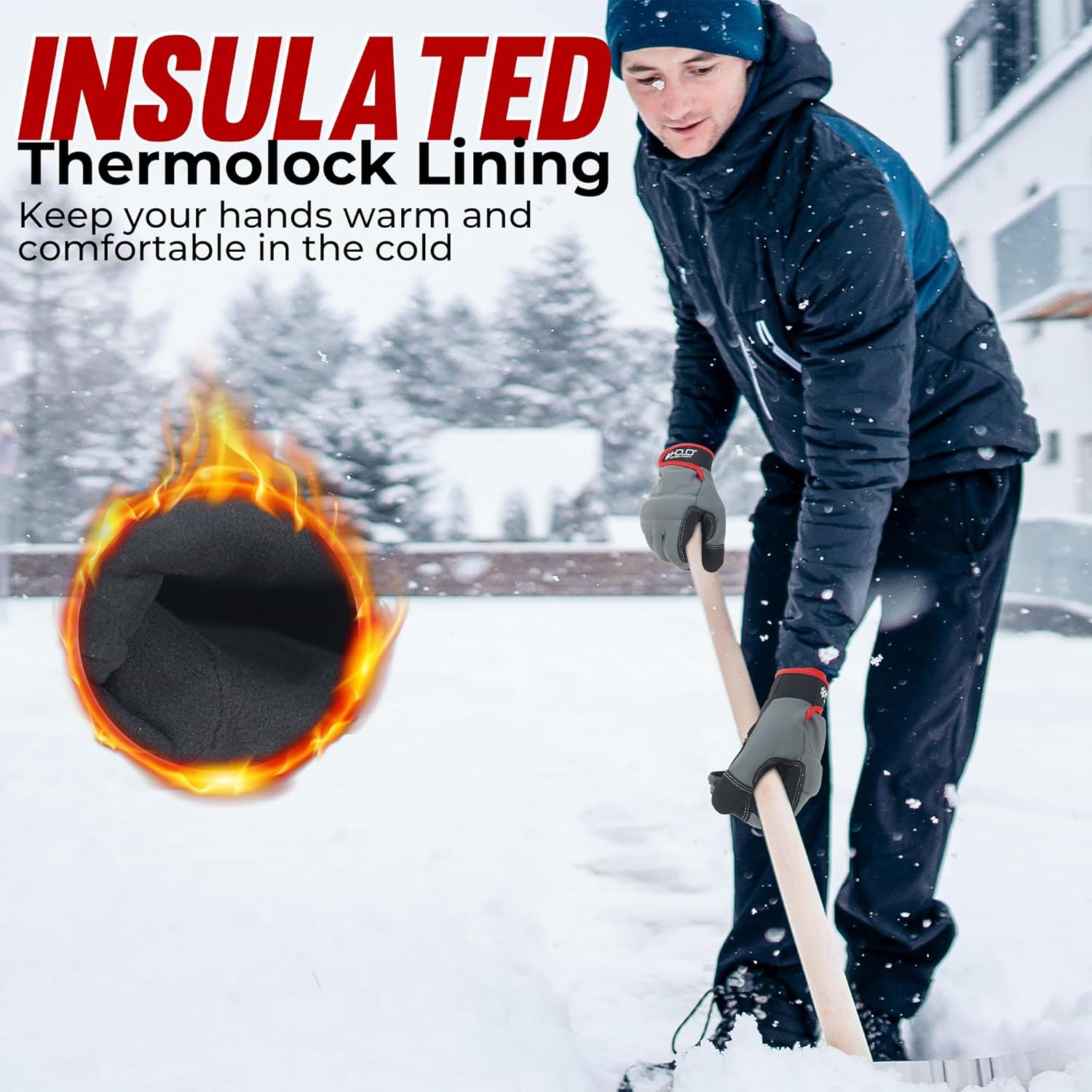 - Durable Material: The palms and the area between the thumb and index finger are reinforced with leather material for enhanced durability. The back of the gloves is made with water-resistant fabric, ensuring your hands stay dry in wet conditions