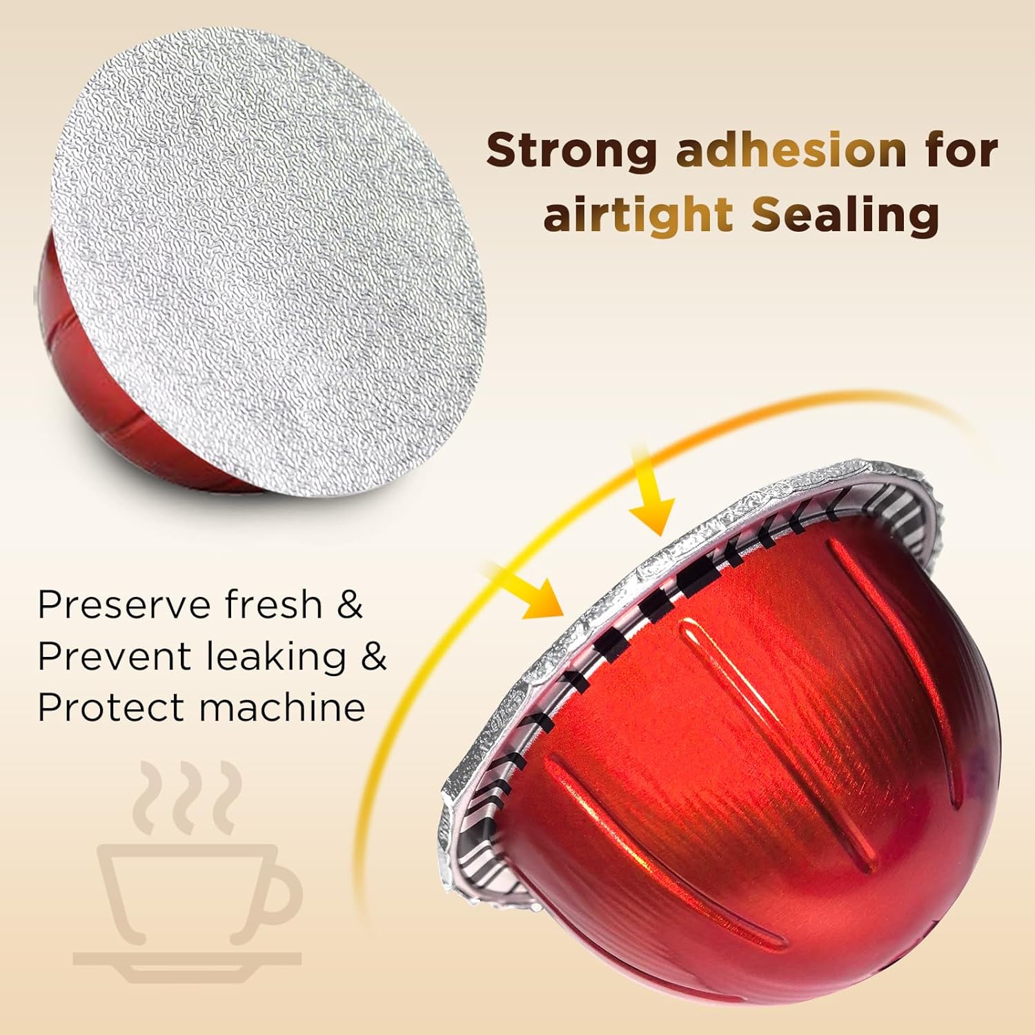 - Perfect Fit and Seal: Our aluminum foil lids fit vertuo pods perfectly without blocking barcodes. The food-grade adhesive ensures a secure seal, preventing leaks and uneven brewing for a rich, flavorful cup with golden crema