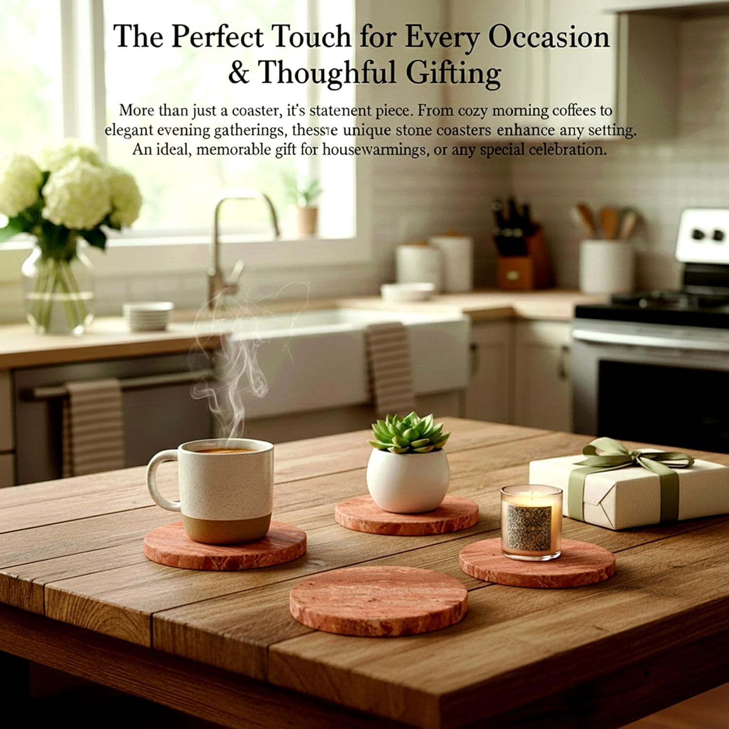 - EXQUITE GIFT:Suitable for indoor or outdoor use, our light beige natural marble coasters offer both decorative elegance and practical protection, safeguarding tables, counters, and other surfaces in your kitchen, living room, bedroom, farmhouse, or office from moisture damage. These coasters make a thoughtful gift for occasions like Mother's Day, Christmas, birthdays, anniversaries, and more, with their stylish aesthetic complementing any home decor