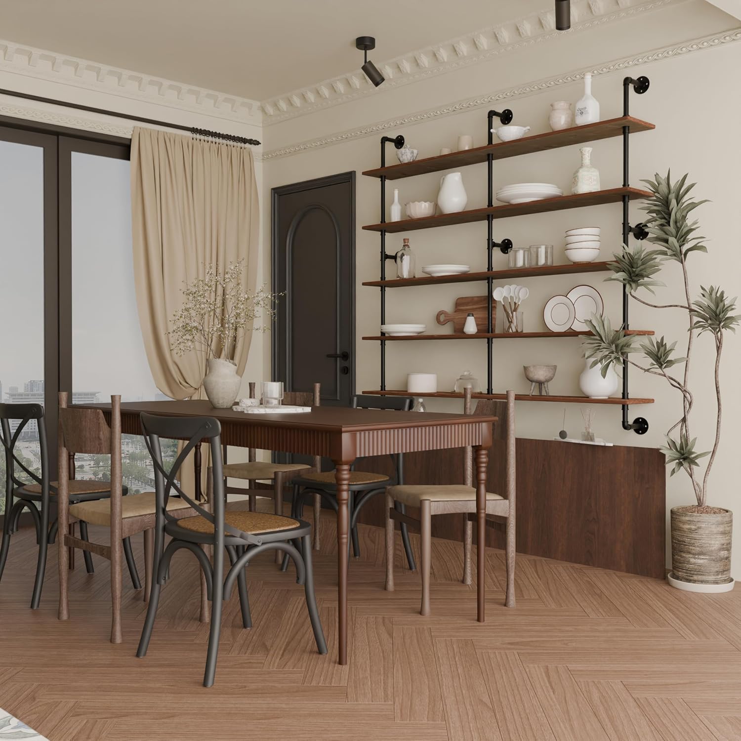 - ăMultiple Useă This industrial shelves is a great choice for a living room,farmhouse pipe shelves or for kitchen.