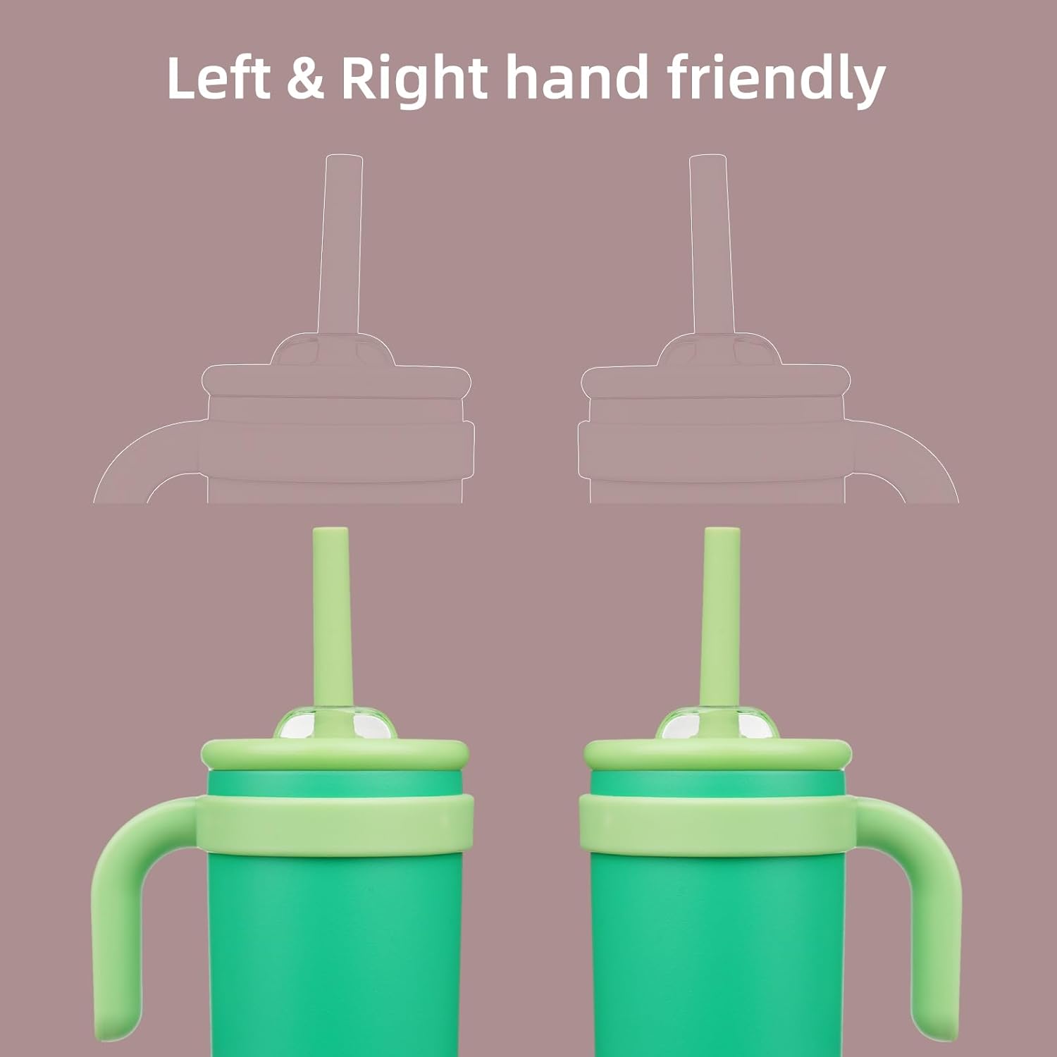 14 oz Tumbler with Side Handle, Insulated Water Bottle with Straw and 2 in 1 Lid, Stainless Steel Cup Travel Coffee Mug for Sports Office Gym,Olive Green