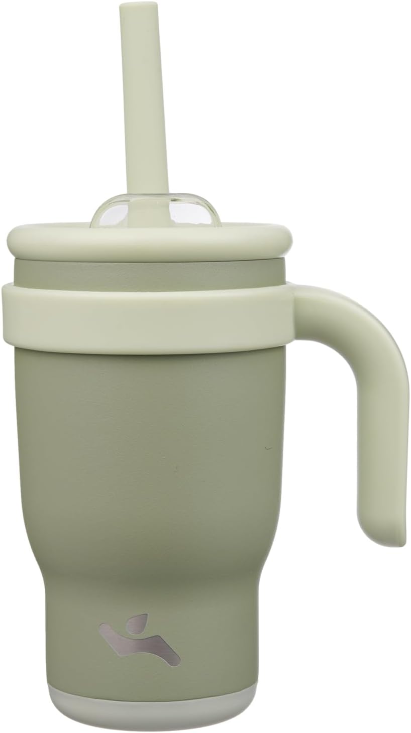 14 oz Tumbler with Side Handle, Insulated Water Bottle with Straw and 2 in 1 Lid, Stainless Steel Cup Travel Coffee Mug for Sports Office Gym,Camp Green